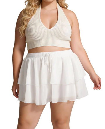 I added a few pictures but blurred out her face and some other people around her (if anything looks strange), but the skirt should be just fine to see. I even added one of us up on a mountain that was crazy windy, so you could see the shorts too!