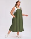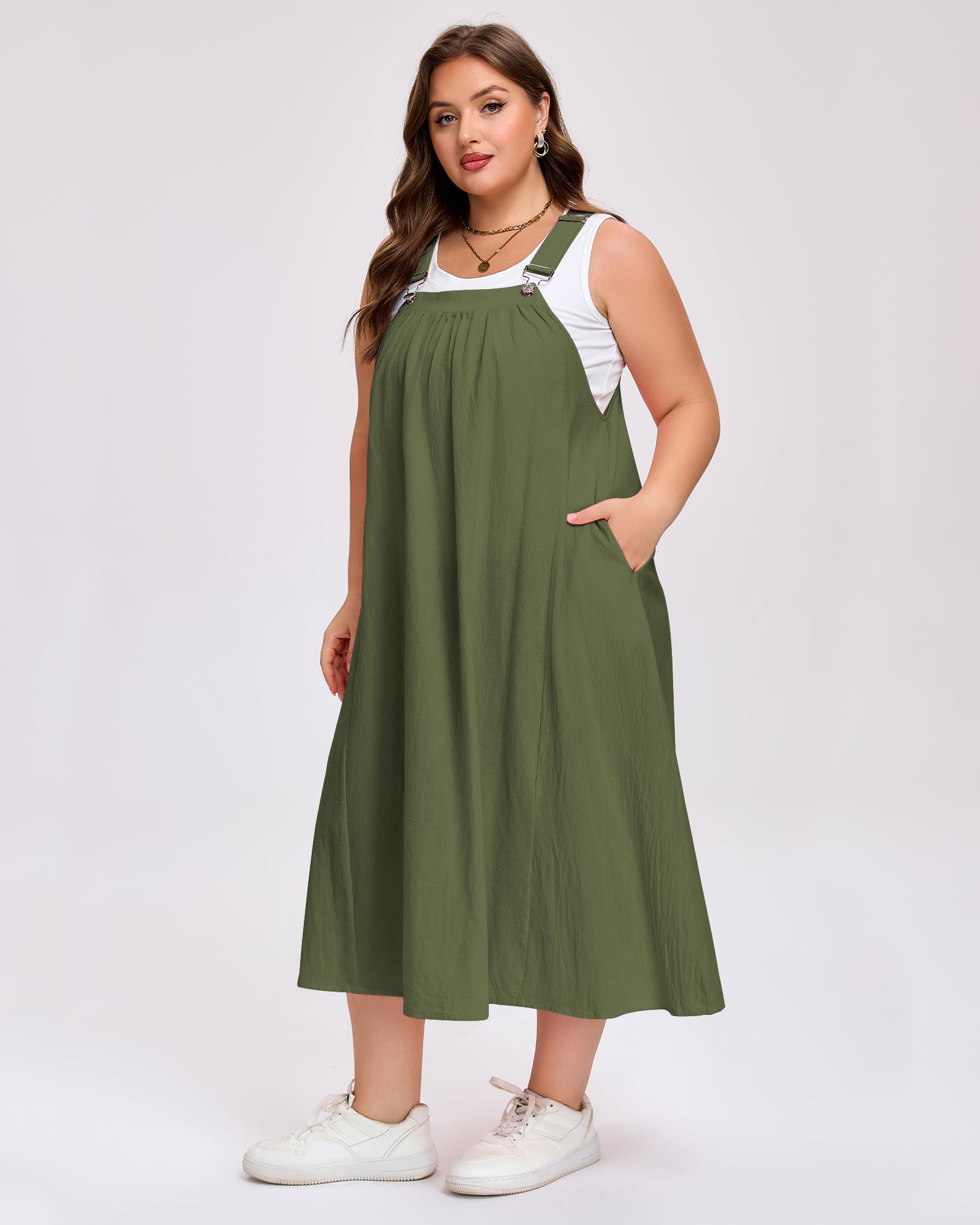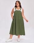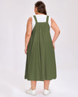 Plus Size Cotton Overall Dress with Pockets - Army Green