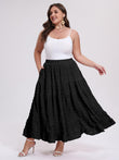 Plus Size Maxi Skirt Tiered A-Line - Black