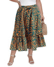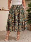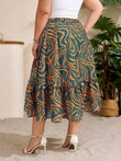 Sommer-Midiröcke mit Rüschen und hoher Taille für Damen in Übergröße – Grün und Weiß