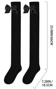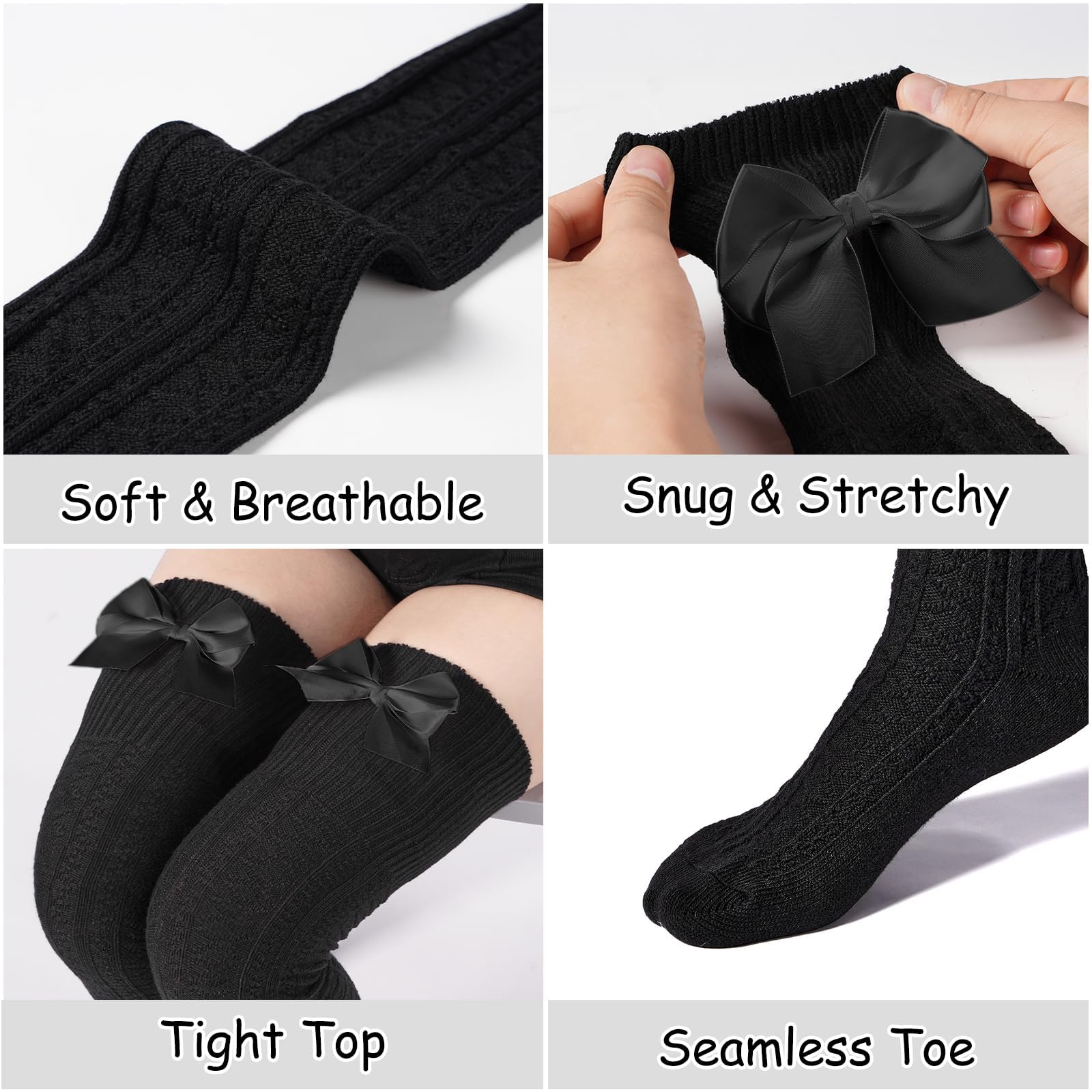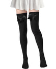 Extralange, warme, gestreifte Oberschenkelstrümpfe aus Strick – Schwarz