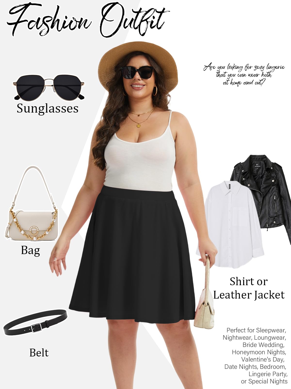 Caractéristique : Offrez-vous une sophistication avec notre jupe midi trapèze taille haute grande taille en noir. Cette pièce intemporelle allie sans effort style et confort, offrant une polyvalence pour toutes les occasions. Du bureau aux sorties du week-end, cette jupe midi est un incontournable de votre garde-robe. Habillez-le avec un chemisier et des talons pour un look raffiné, ou associez-le à un t-shirt décontracté et des baskets pour une ambiance décontractée. La silhouette trapèze ajoute une touche de féminité à n'importe quel ensemble, ce qui en fait une pièce polyvalente pour toutes les occasions. Les mini-jupes grande taille sont disponibles dans une variété de tailles (L-4XL).