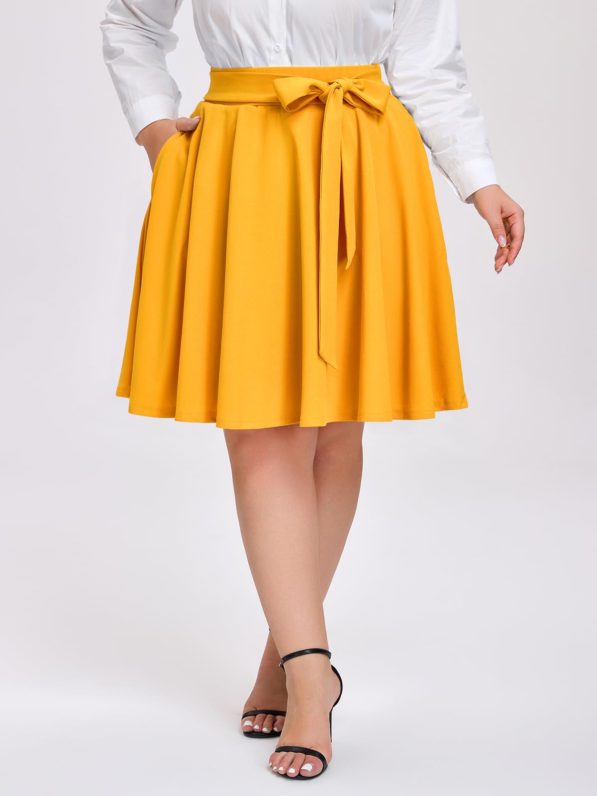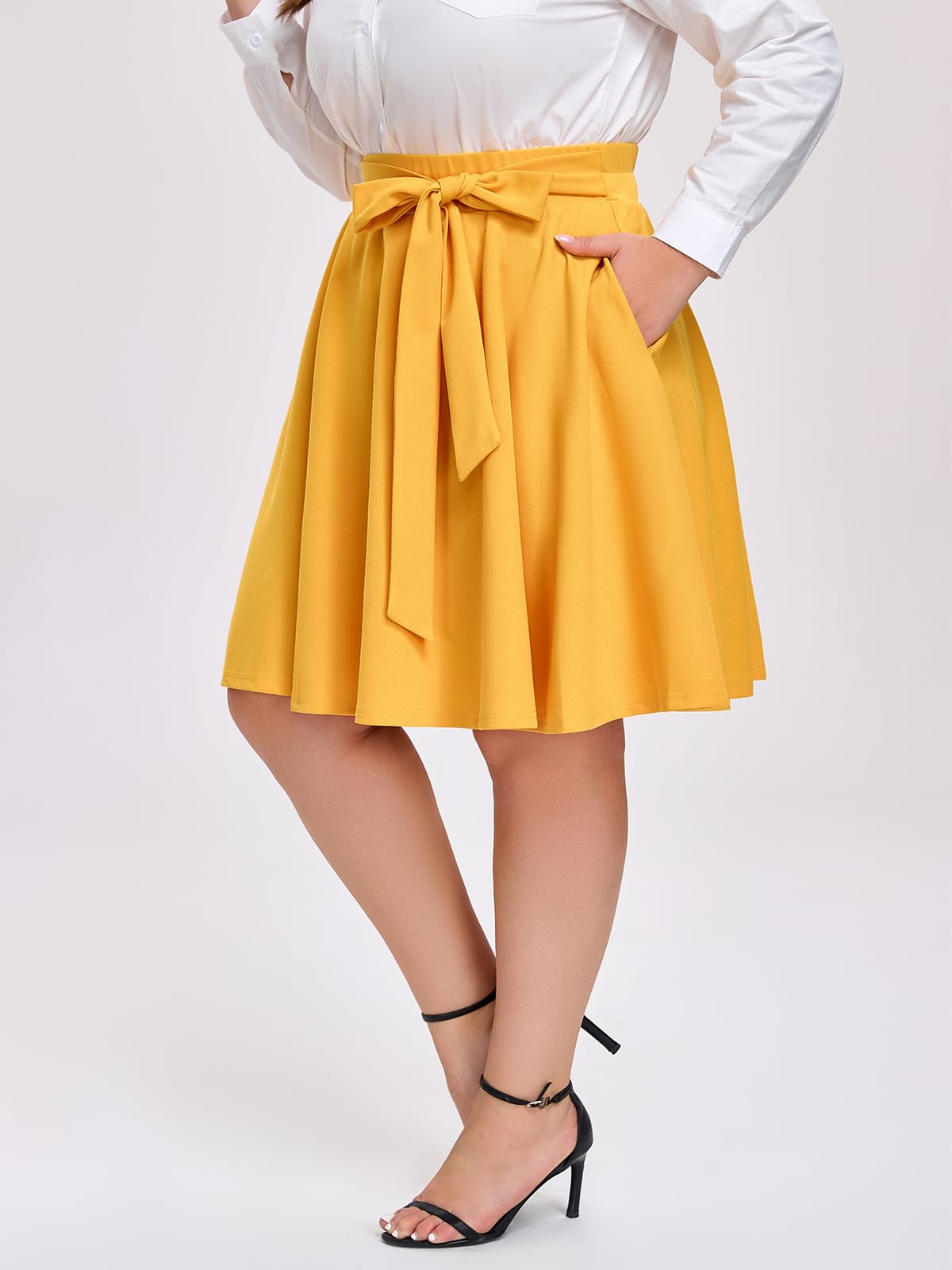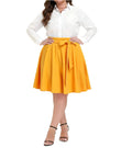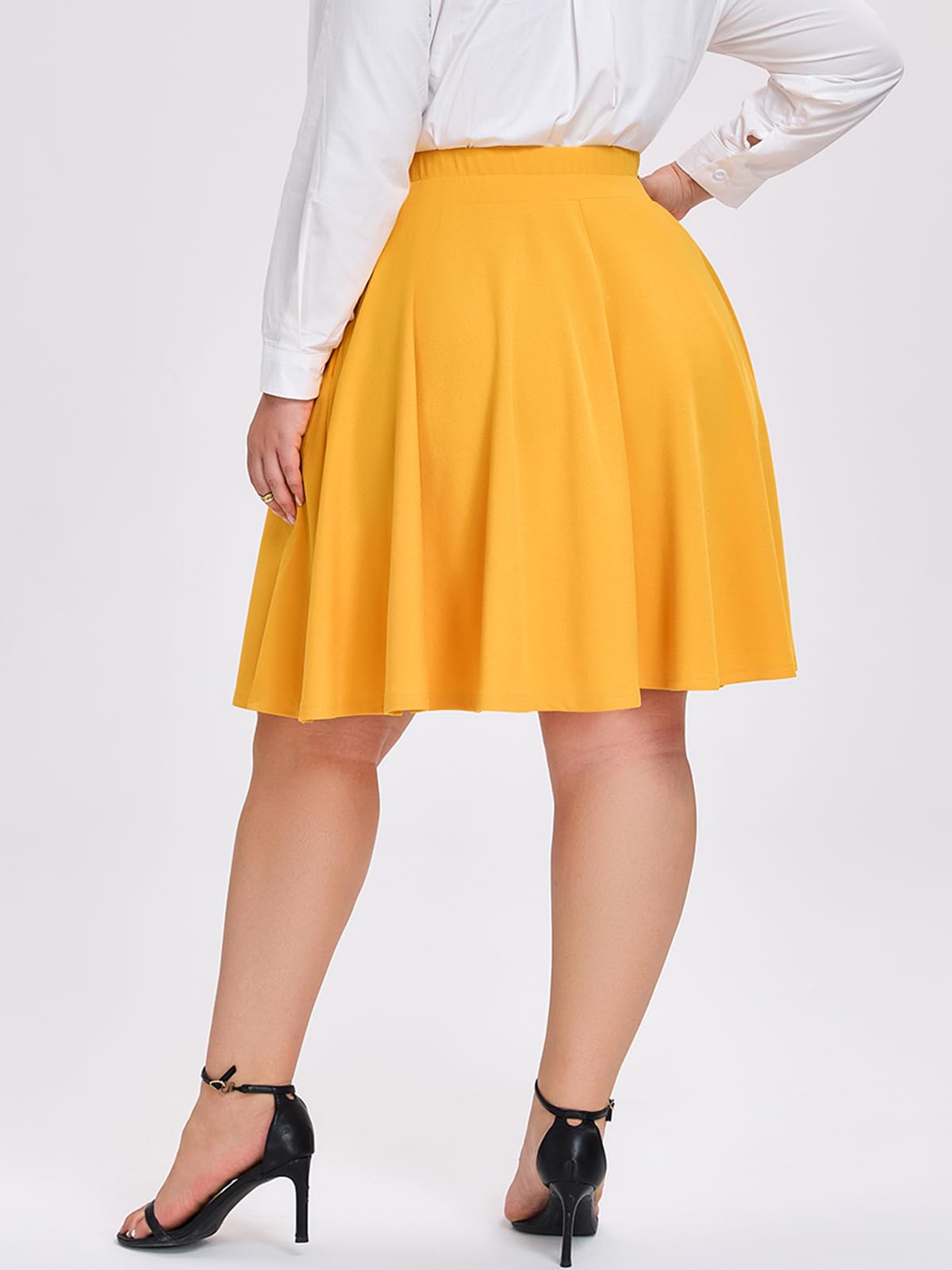 Caractéristique : Offrez-vous une sophistication avec notre jupe midi trapèze taille haute grande taille en noir. Cette pièce intemporelle allie sans effort style et confort, offrant une polyvalence pour toutes les occasions. Du bureau aux sorties du week-end, cette jupe midi est un incontournable de votre garde-robe. Habillez-le avec un chemisier et des talons pour un look raffiné, ou associez-le à un t-shirt décontracté et des baskets pour une ambiance décontractée. La silhouette trapèze ajoute une touche de féminité à n'importe quel ensemble, ce qui en fait une pièce polyvalente pour toutes les occasions. Les mini-jupes grande taille sont disponibles dans une variété de tailles (L-4XL).