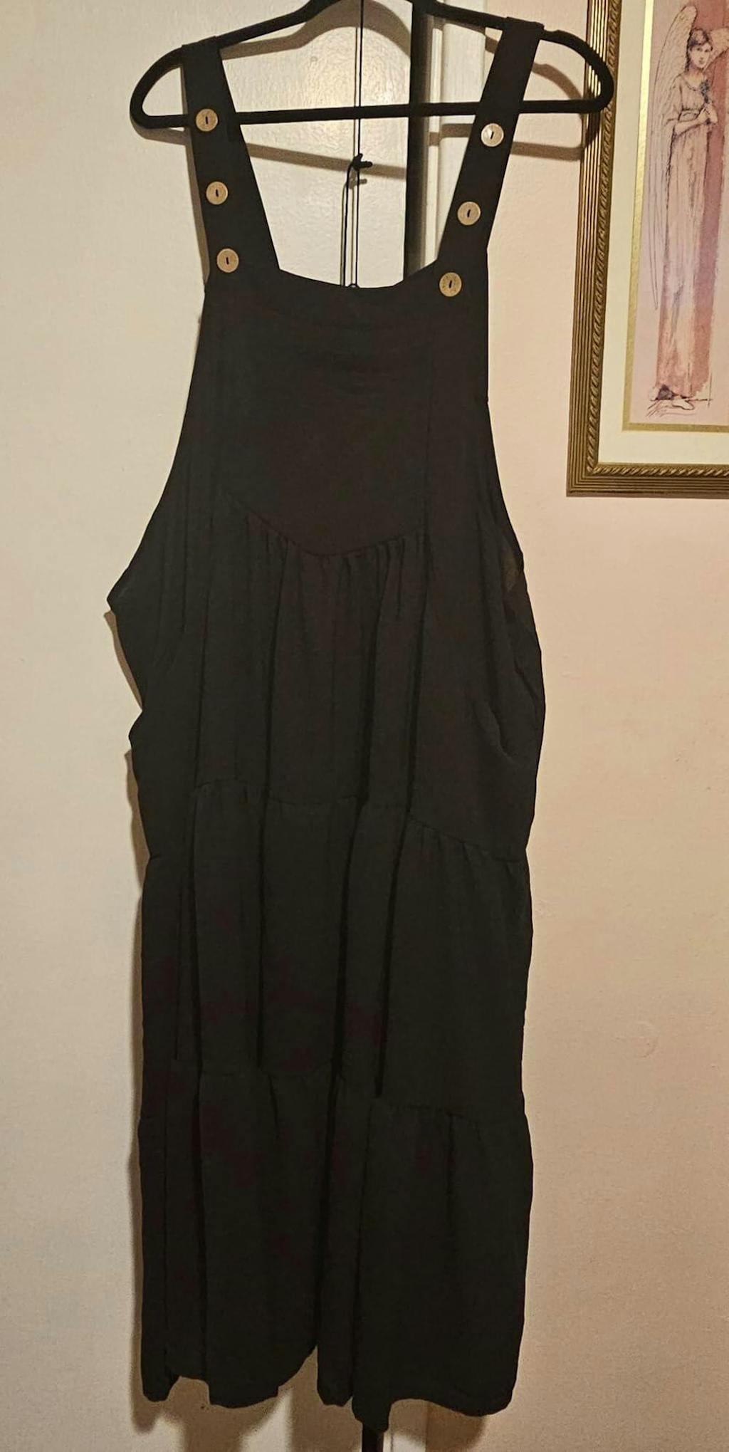 Plus Size Tiered Bib Overall Dress - Black-Moon Wood