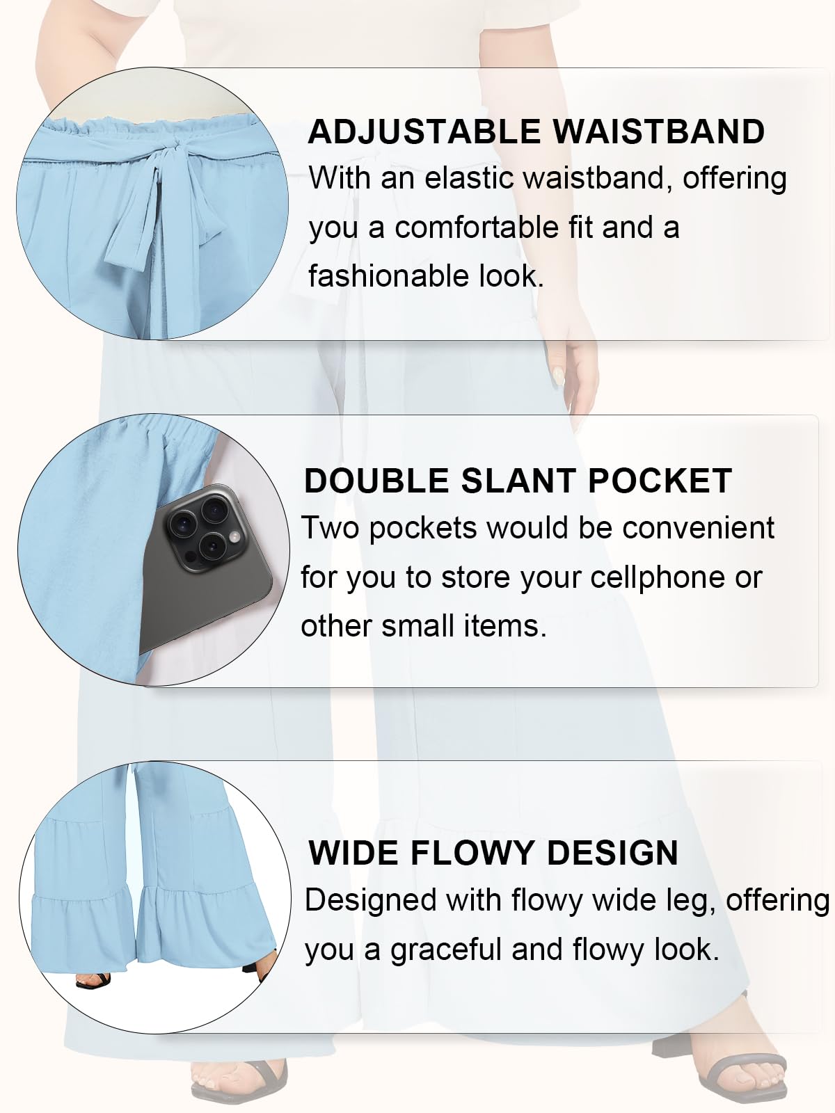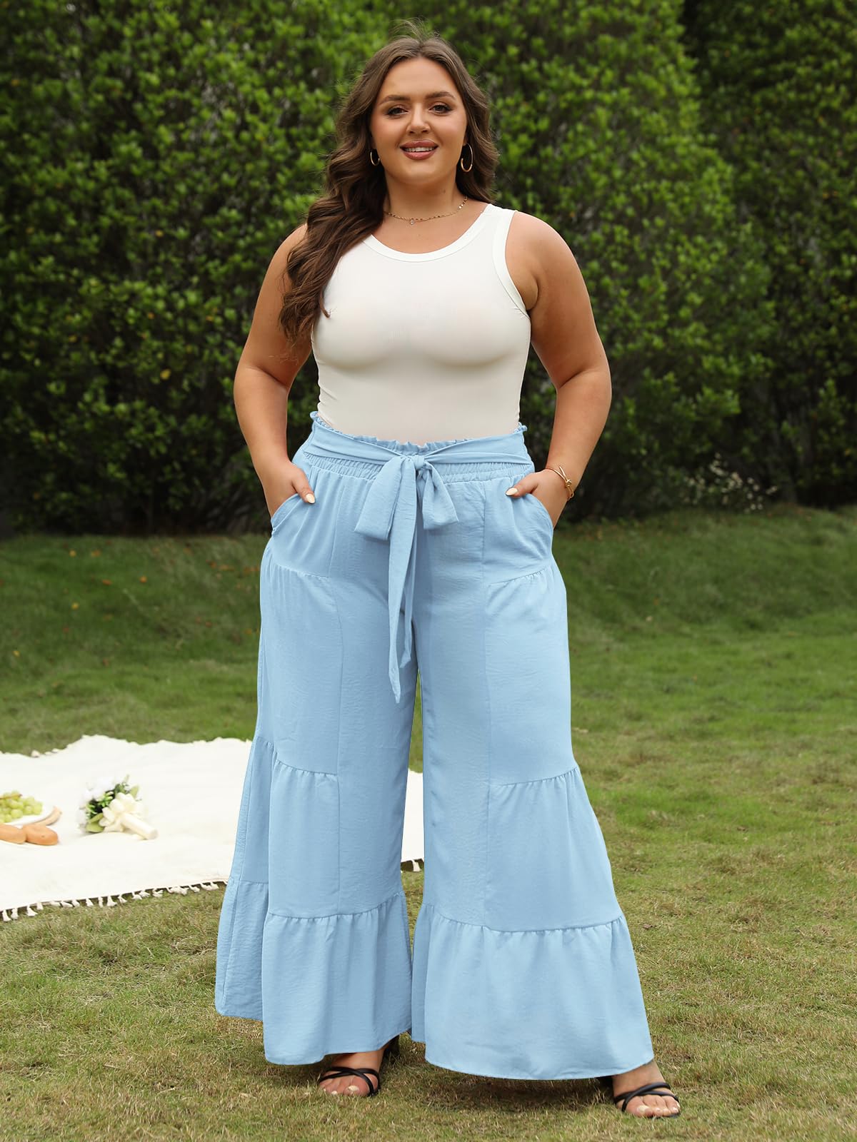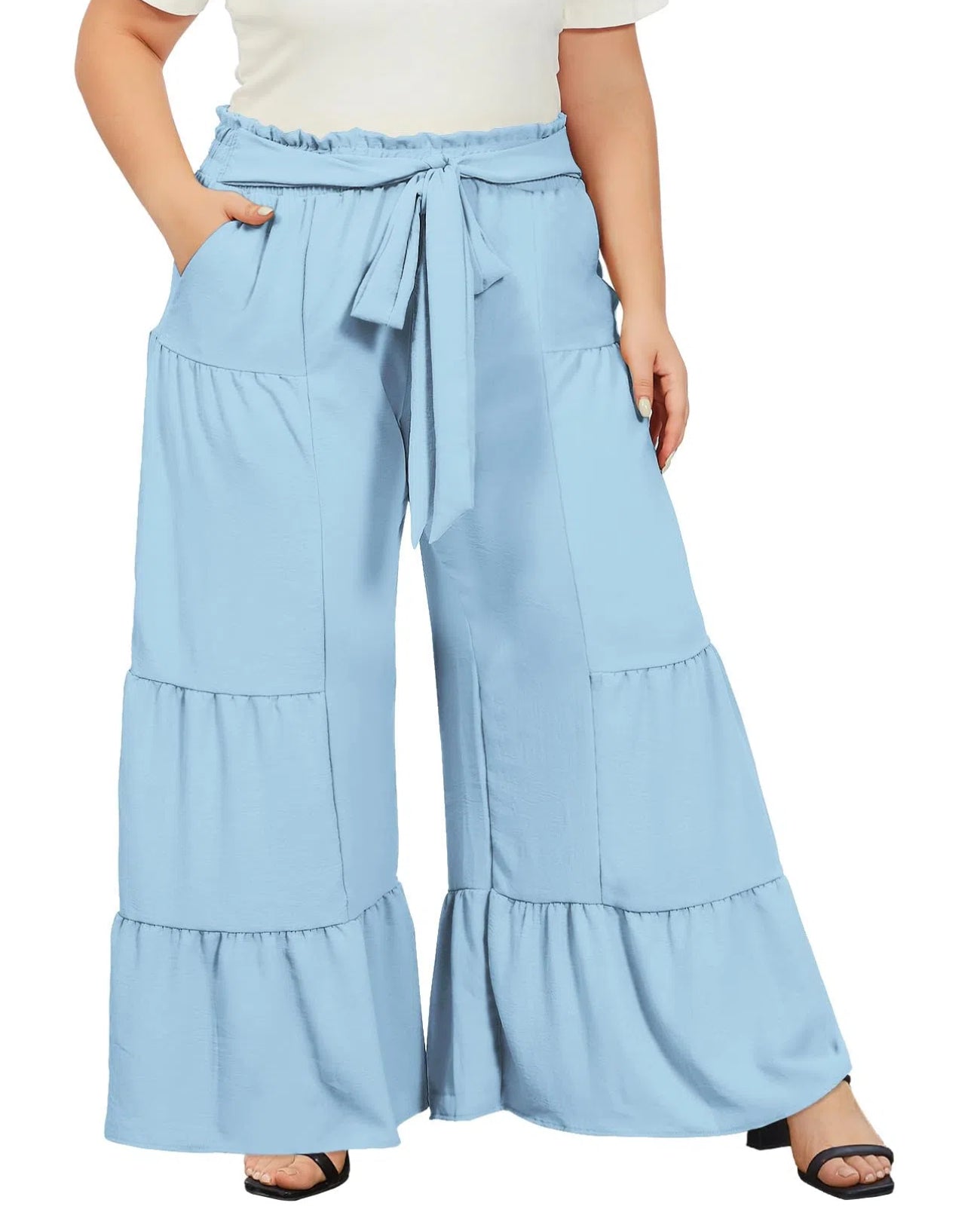 Plus Size Wide Leg Pants High Waisted - Haze Blue