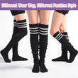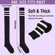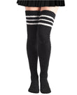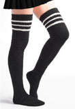 Coral Fleece Striped Thigh High Socks - Black & 3 White