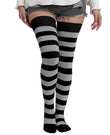 Cotton Thigh High Socks Striped - Black Grey