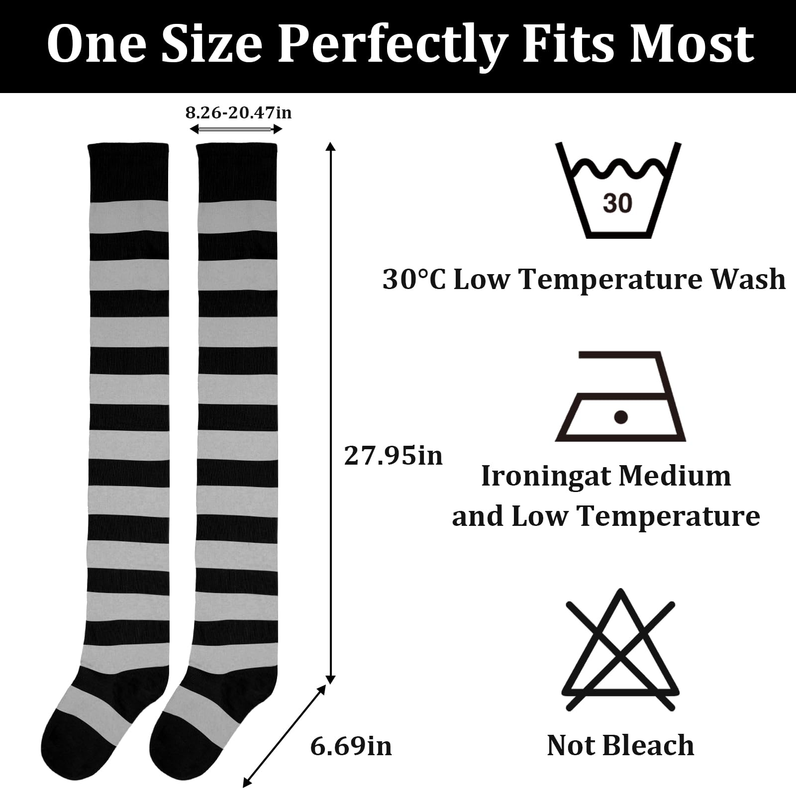 Elevate your style with Moon Wood's Cotton Thigh High Socks in classic Black Grey stripes. Designed for ultimate versatility and comfort, these extra-long socks are your go-to accessory for creating multiple distinct looks. Wear them pulled up high for a bold, statement silhouette, roll them down to just below the knees for a preppy vibe, or fold them into cozy leg warmers for a chic, layered effect. Crafted from soft, breathable cotton, they ensure all-day comfort whether you're pairing them with boots, sneakers, or skirts. Unleash your creativity and redefine your outfit with these must-have striped socks.