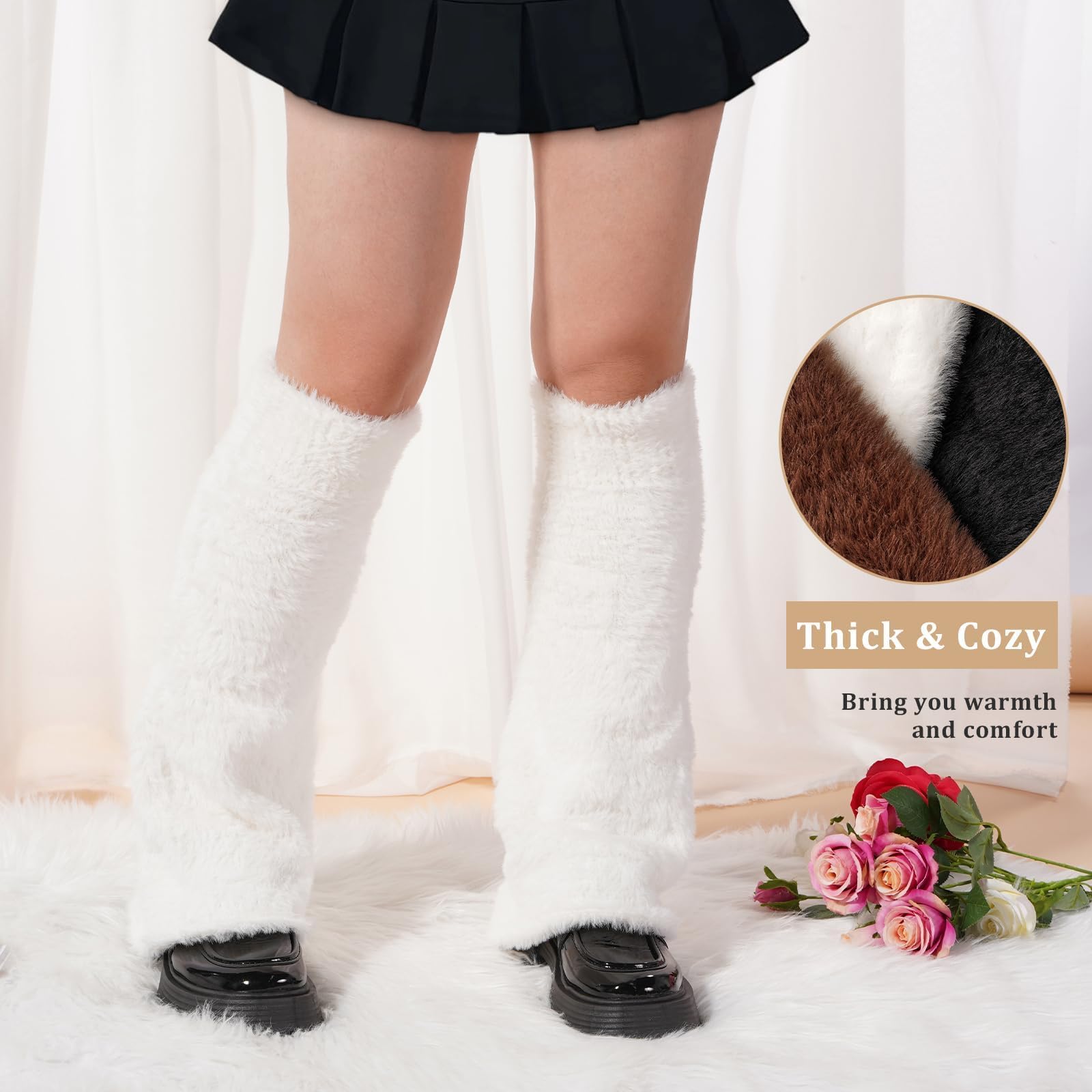 Leg Warmers Plush Kawaii Fuzzy - White