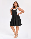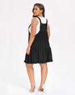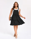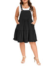 Plus Size Bib Overall Dress Tiered Mini Dress - Black