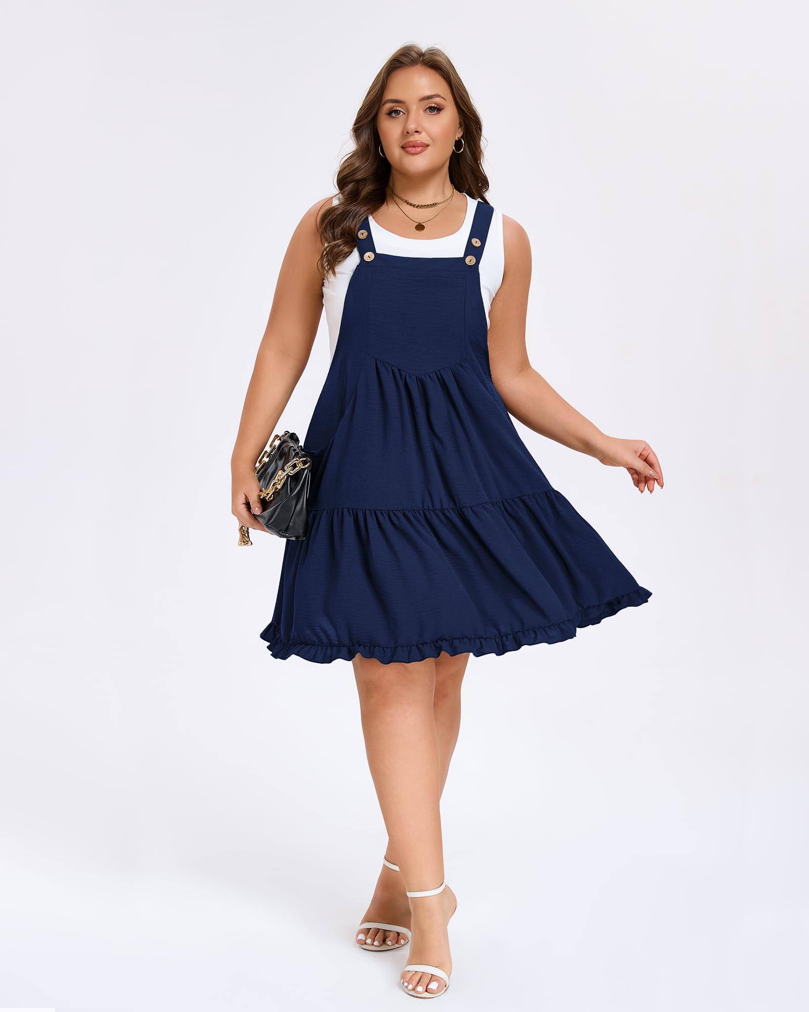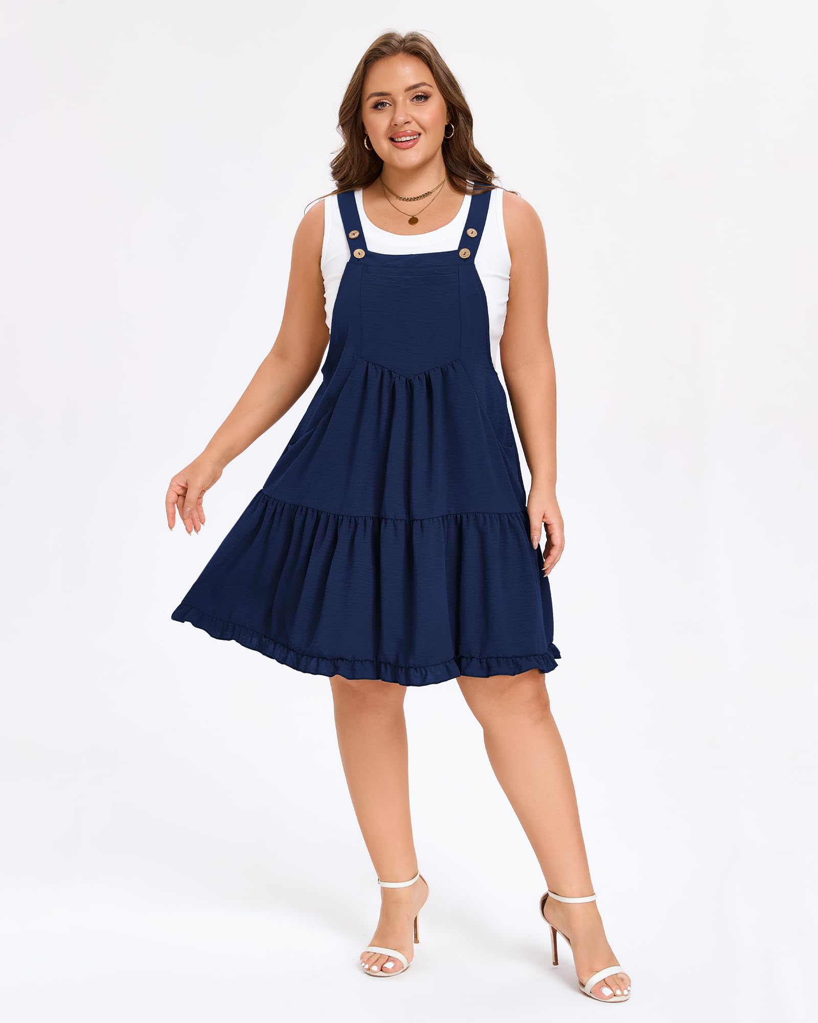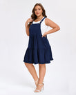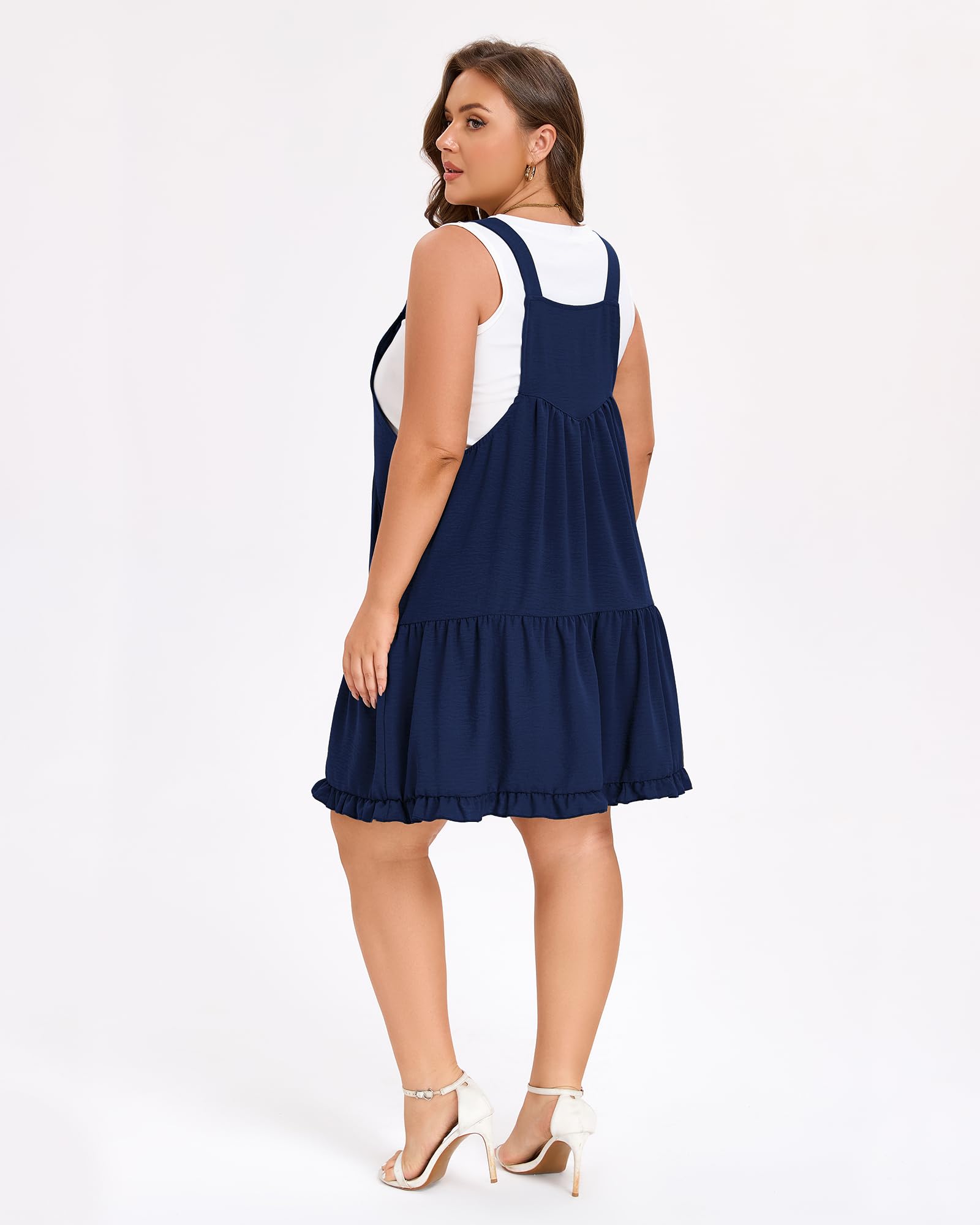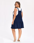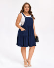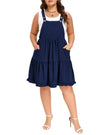 Plus Size Bib Overall Dress Tiered Mini Dress - Navy Blue