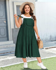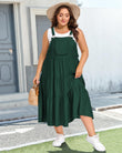 Plus Size Bib Overall Dress with Lace Trim - Dark Green