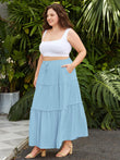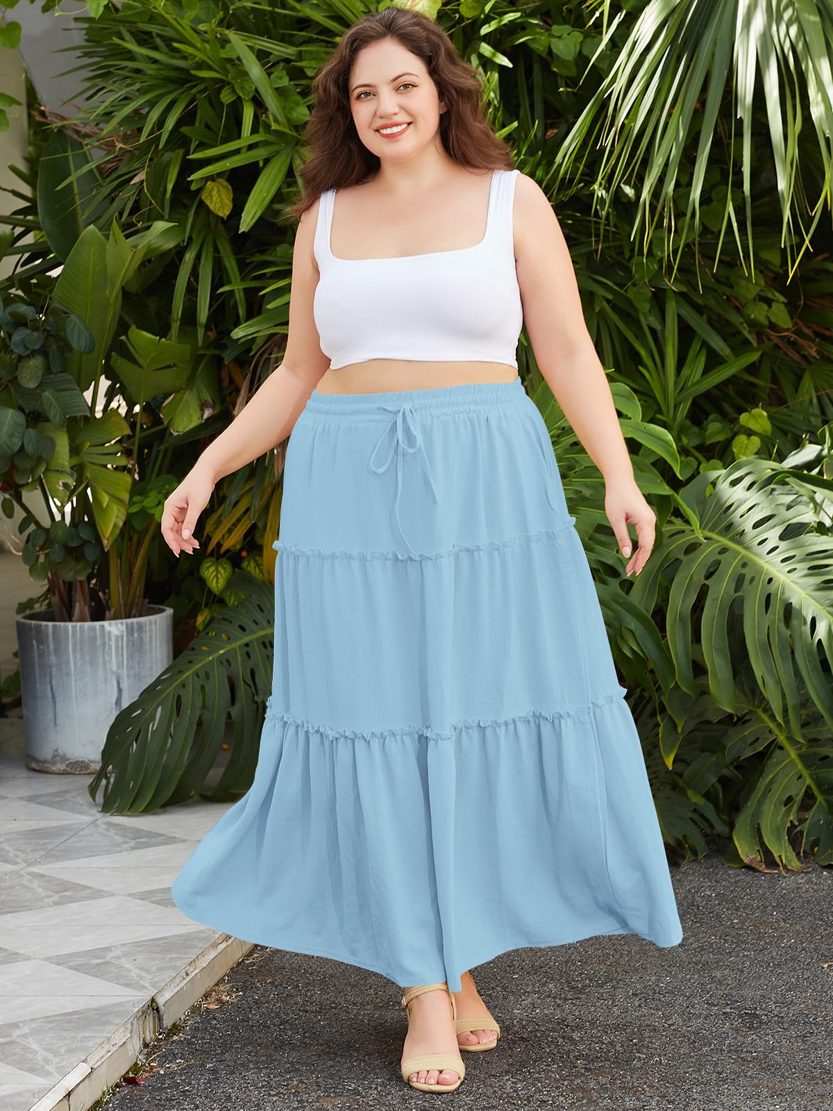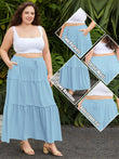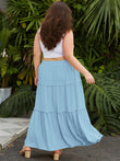 Plus Size Boho Maxi Skirt A Line Flowy - Light Blue