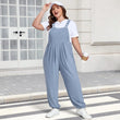 Plus Size Casual Overalls Jumpsuit Loose Fit - Grey Blue