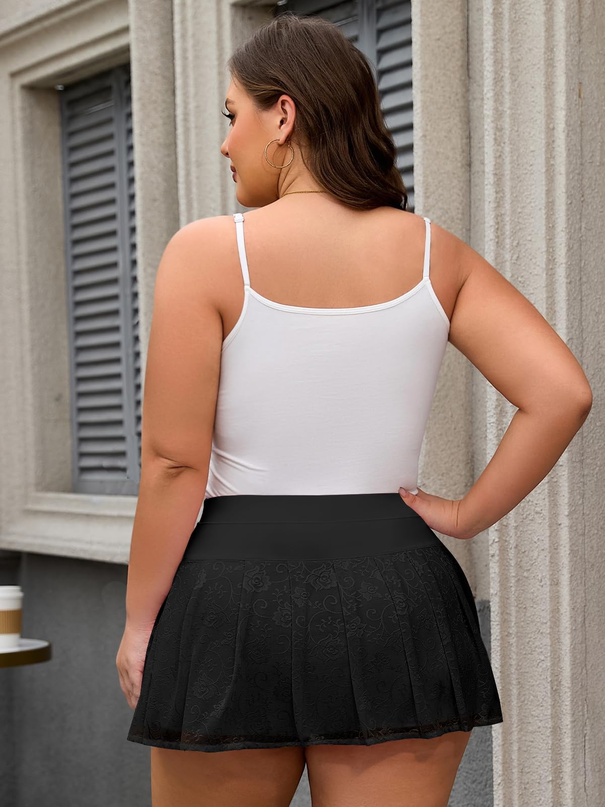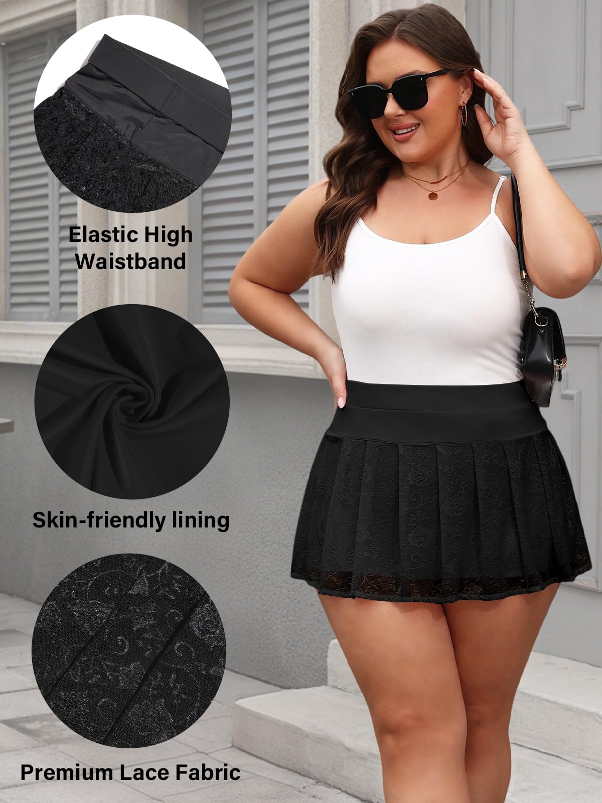 Plus Size Lace Micro Mini Pleated Skirt - Black