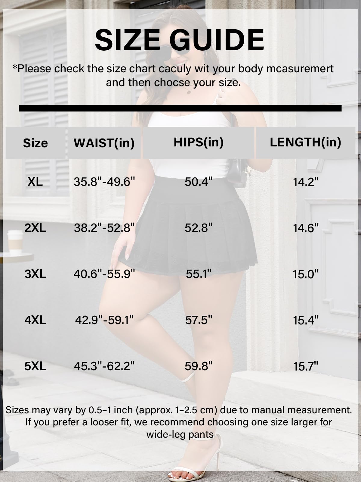 Plus size skirts are available in a variety of sizes (XL-5XL)