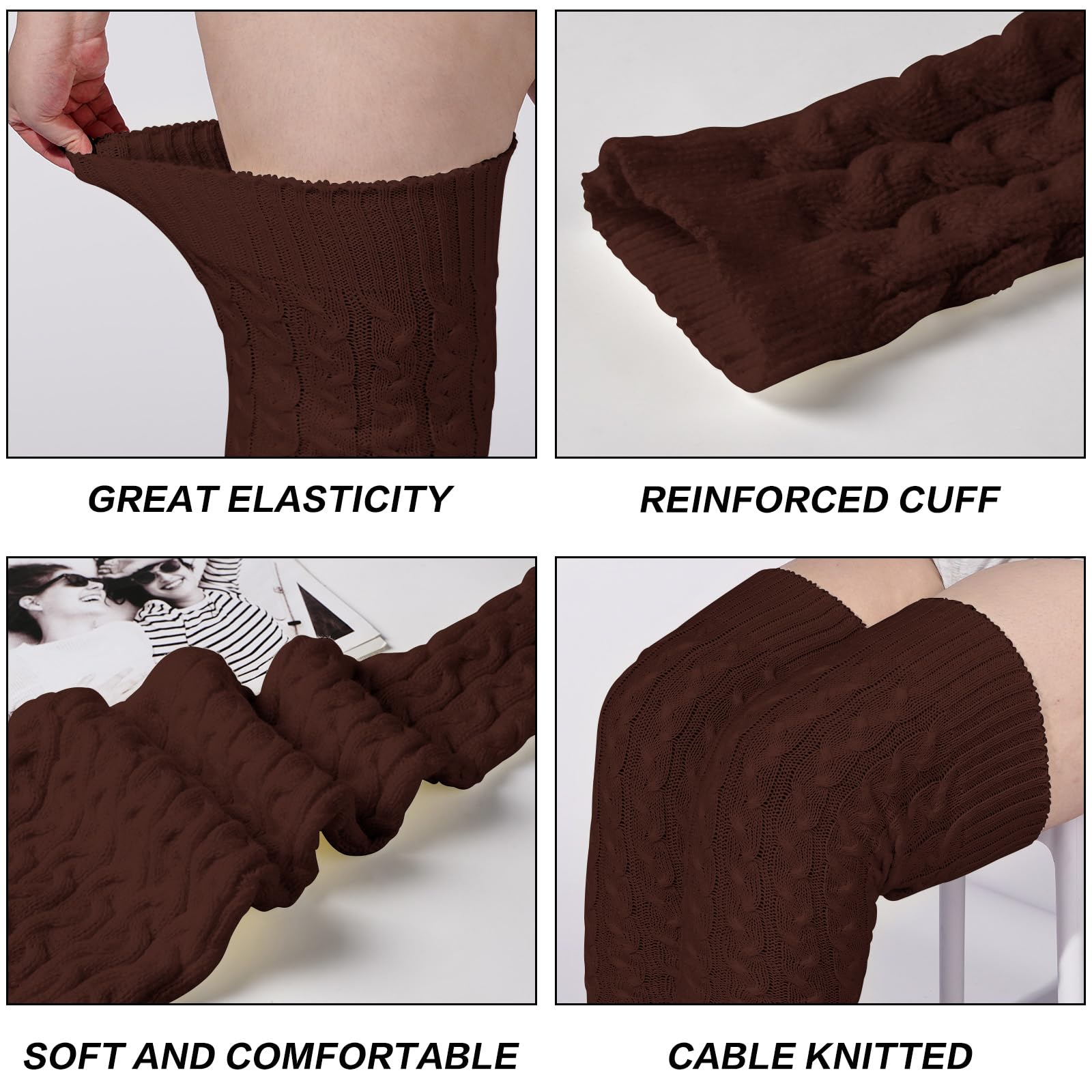 Plus Size Leg Warmers Cable Knitted - Coffee
