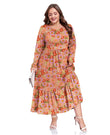 Discover effortless elegance in our Moon Wood Plus Size Maxi Dress. Designed for comfort and style, the relaxed long sleeves provide cozy ease without tightness, while delicate ruffles add a feminine flourish. This dress elevates beyond the basics, perfect as a winter maxi dress. The classic high waist elongates your silhouette, beautifully shaping your figure. Featuring a graceful A-line cut and soft pleated details, the skirt flows and drapes flatteringly, accentuating your waist and hips to create a charming, confident look. Ideal for both casual days and special occasions.