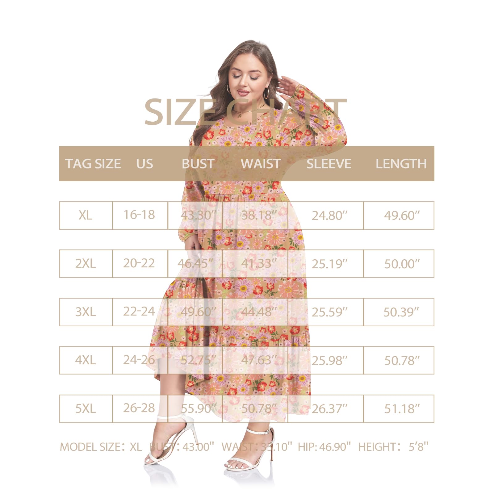 Plus size dresses are available in a variety of sizes (XL-5XL)