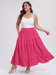 Plus Size Maxi Skirt Tiered A-Line - Rose