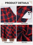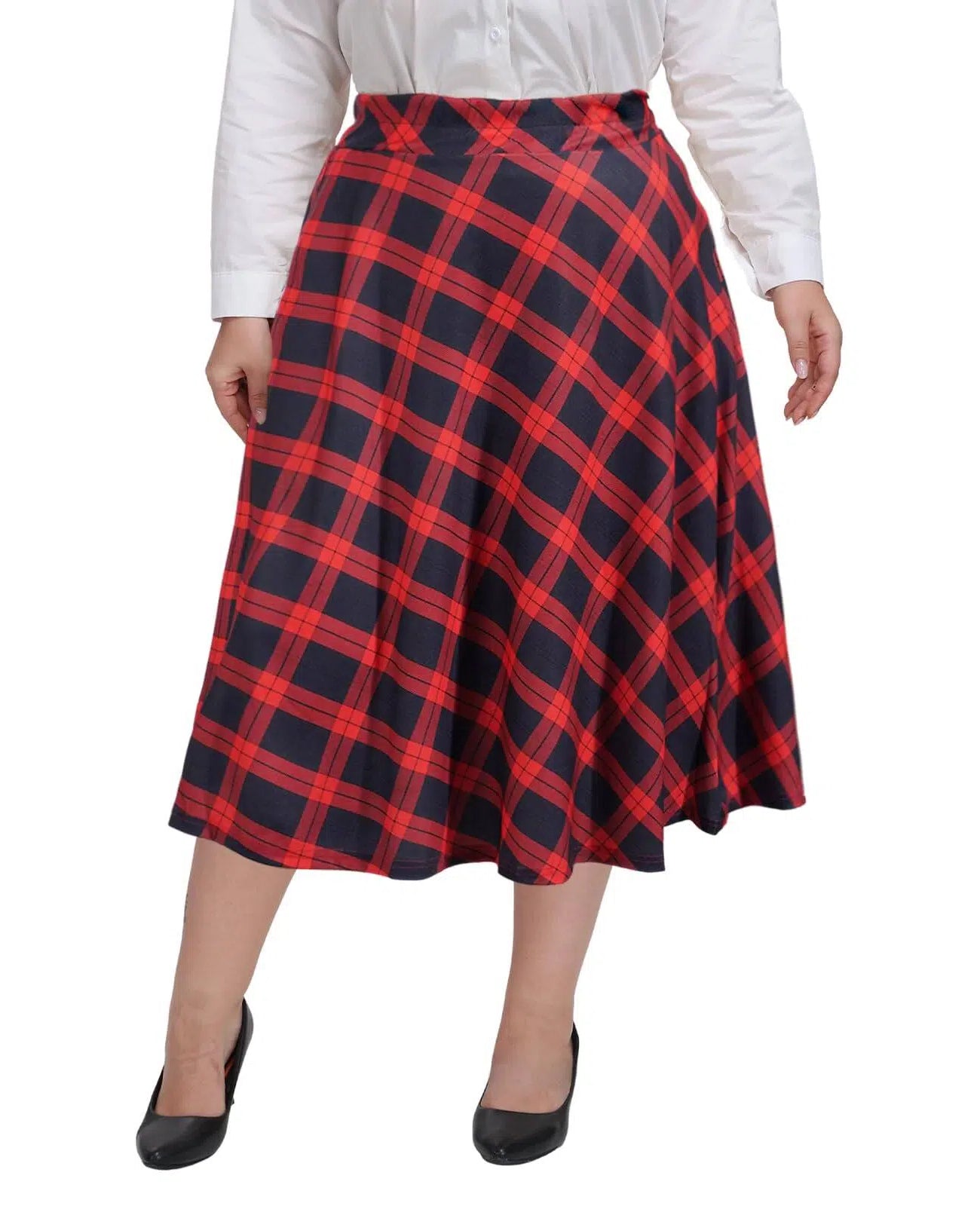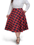 Plus Size Midi Skirt High Elastic Waist - Red Blue Plaid