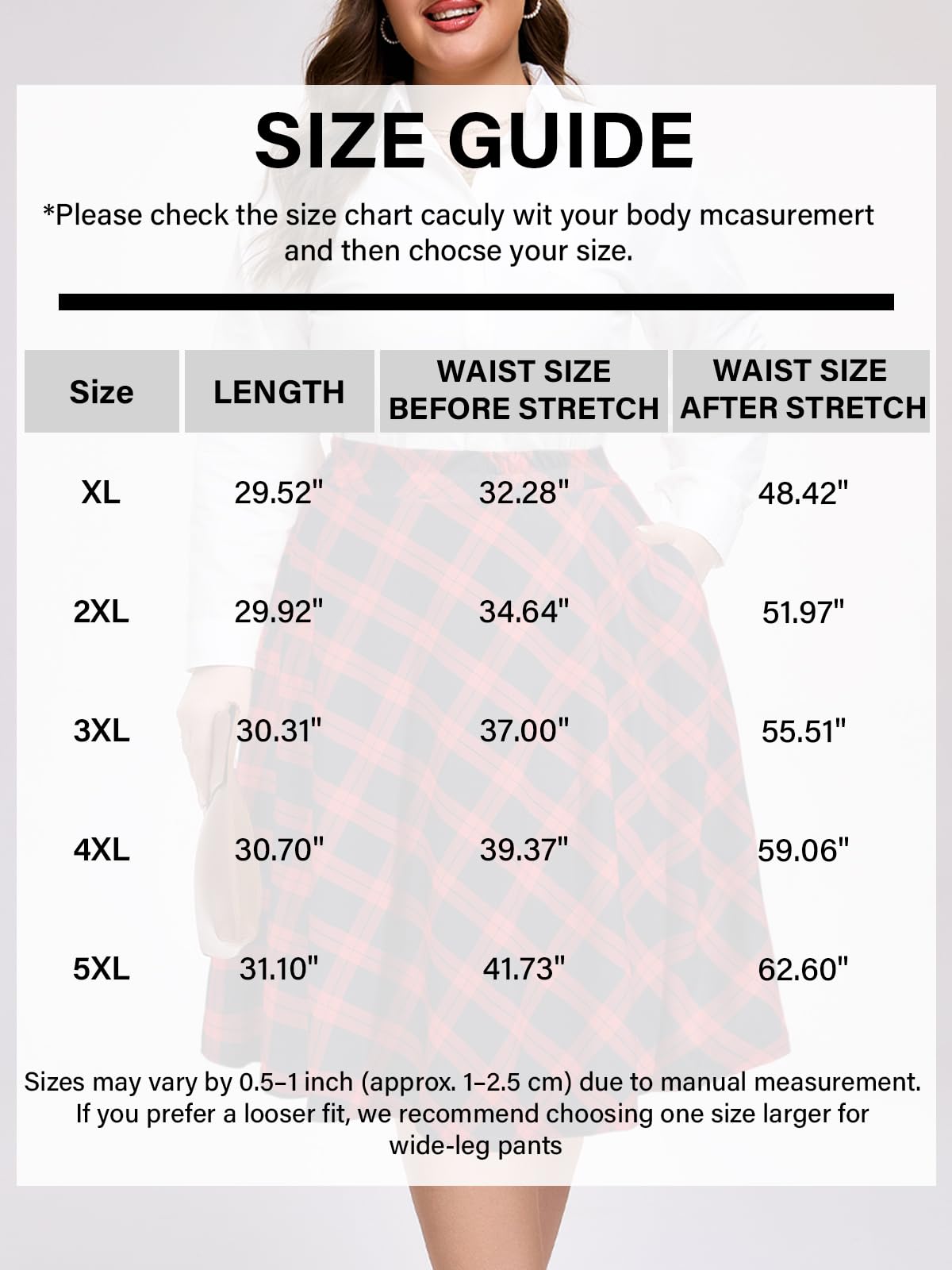 Plus size skirts are available in a variety of sizes (XL-5XL)