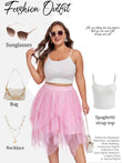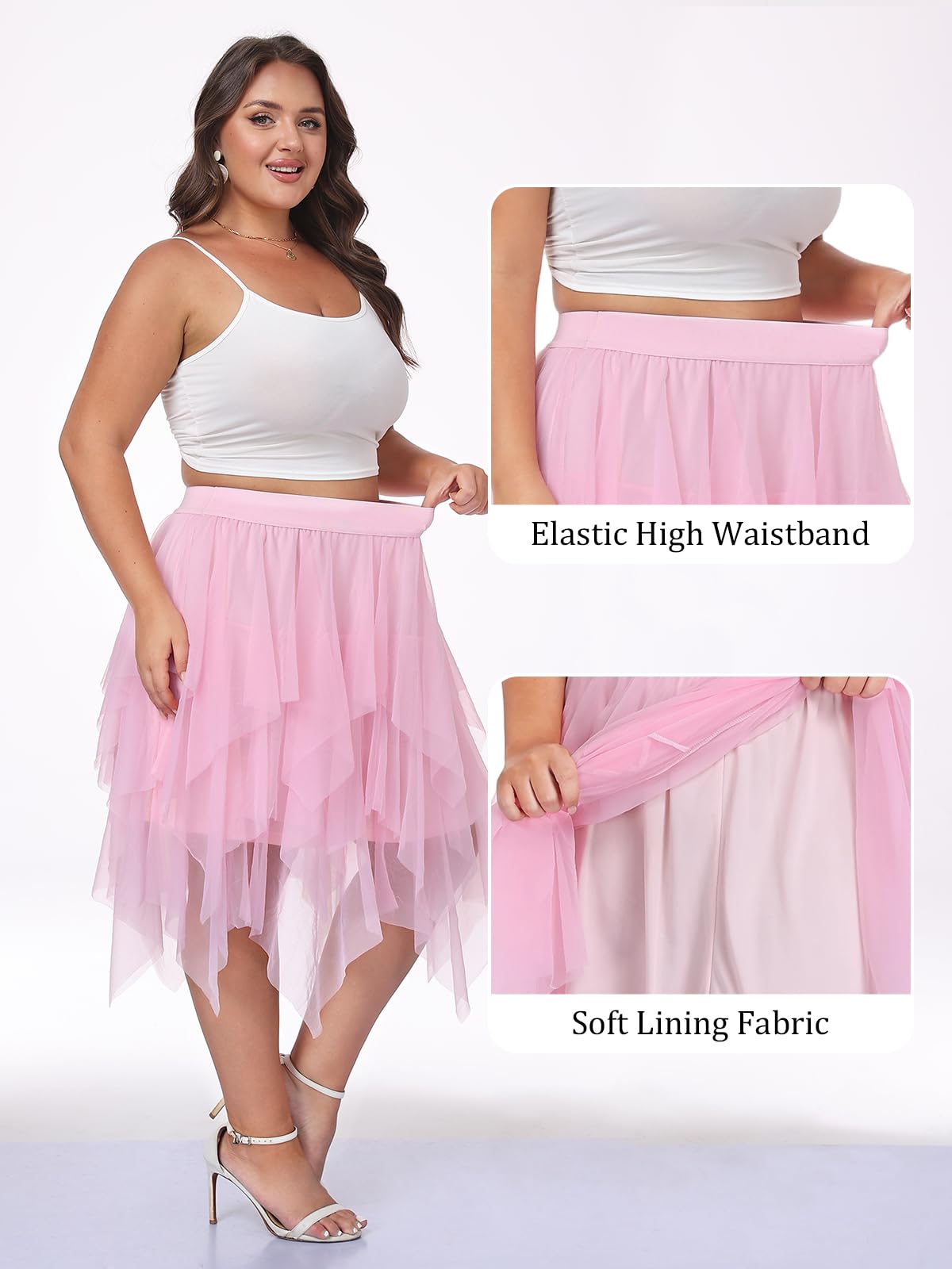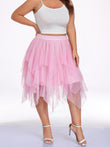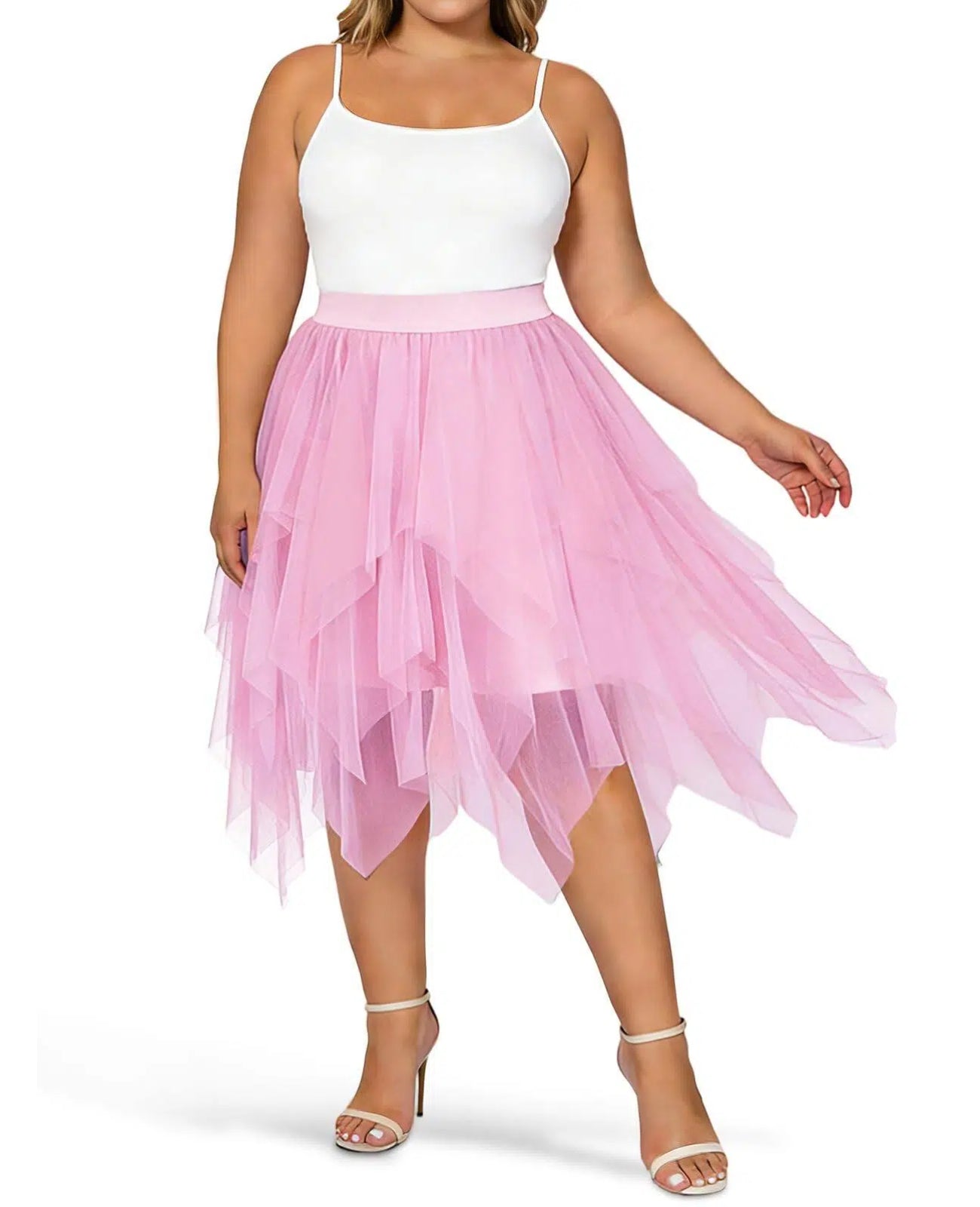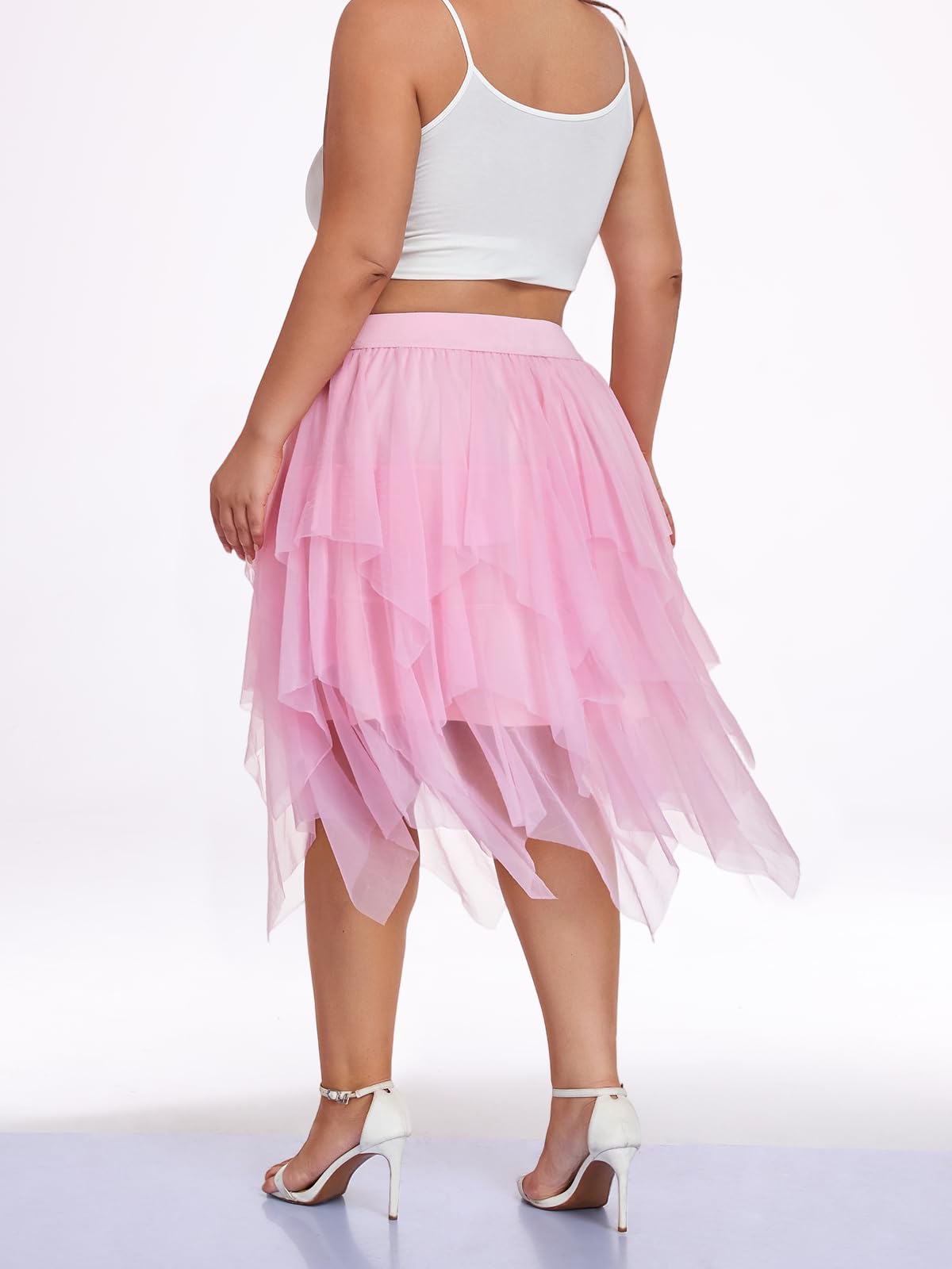 Plus Size Midi Skirt Tulle Layered - Light Pink