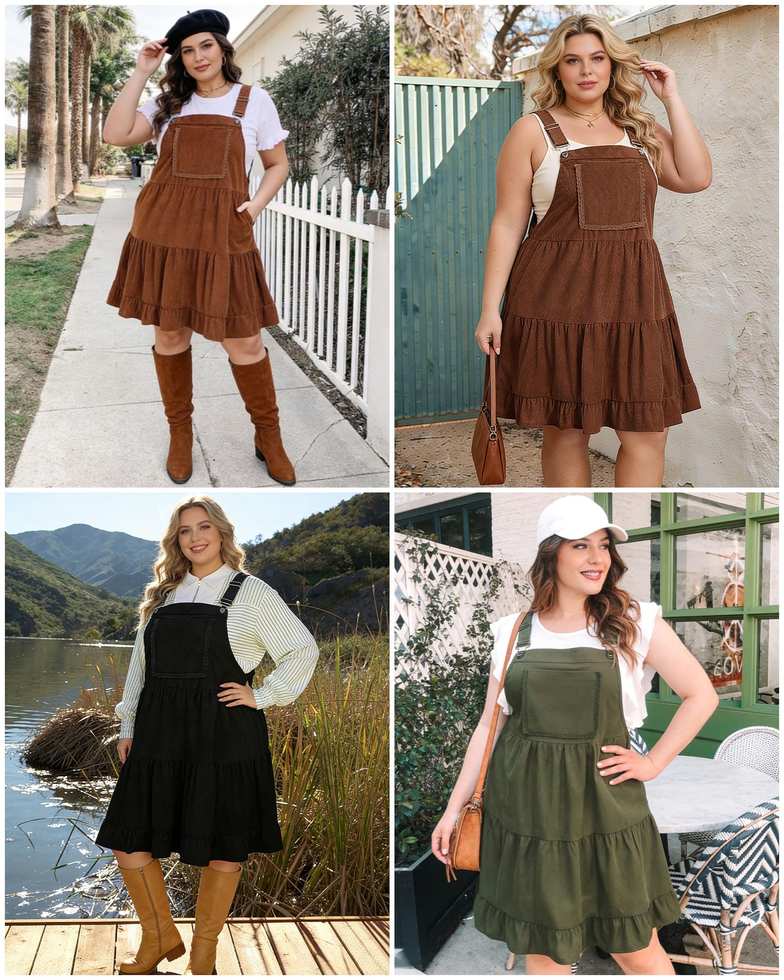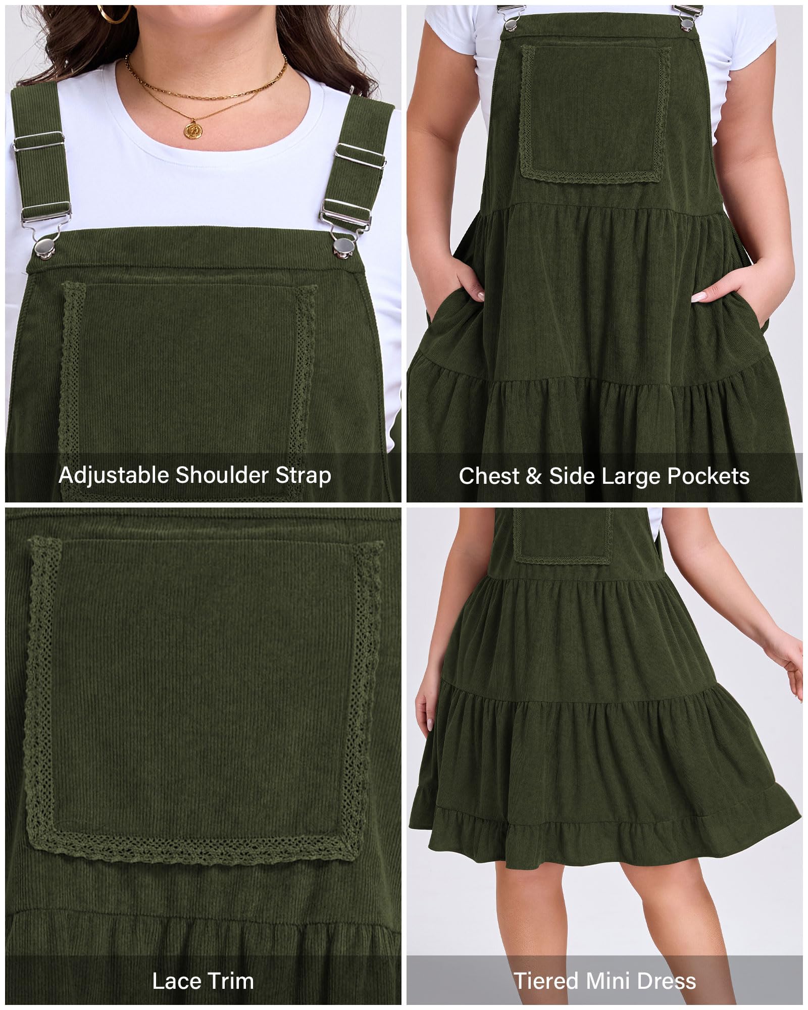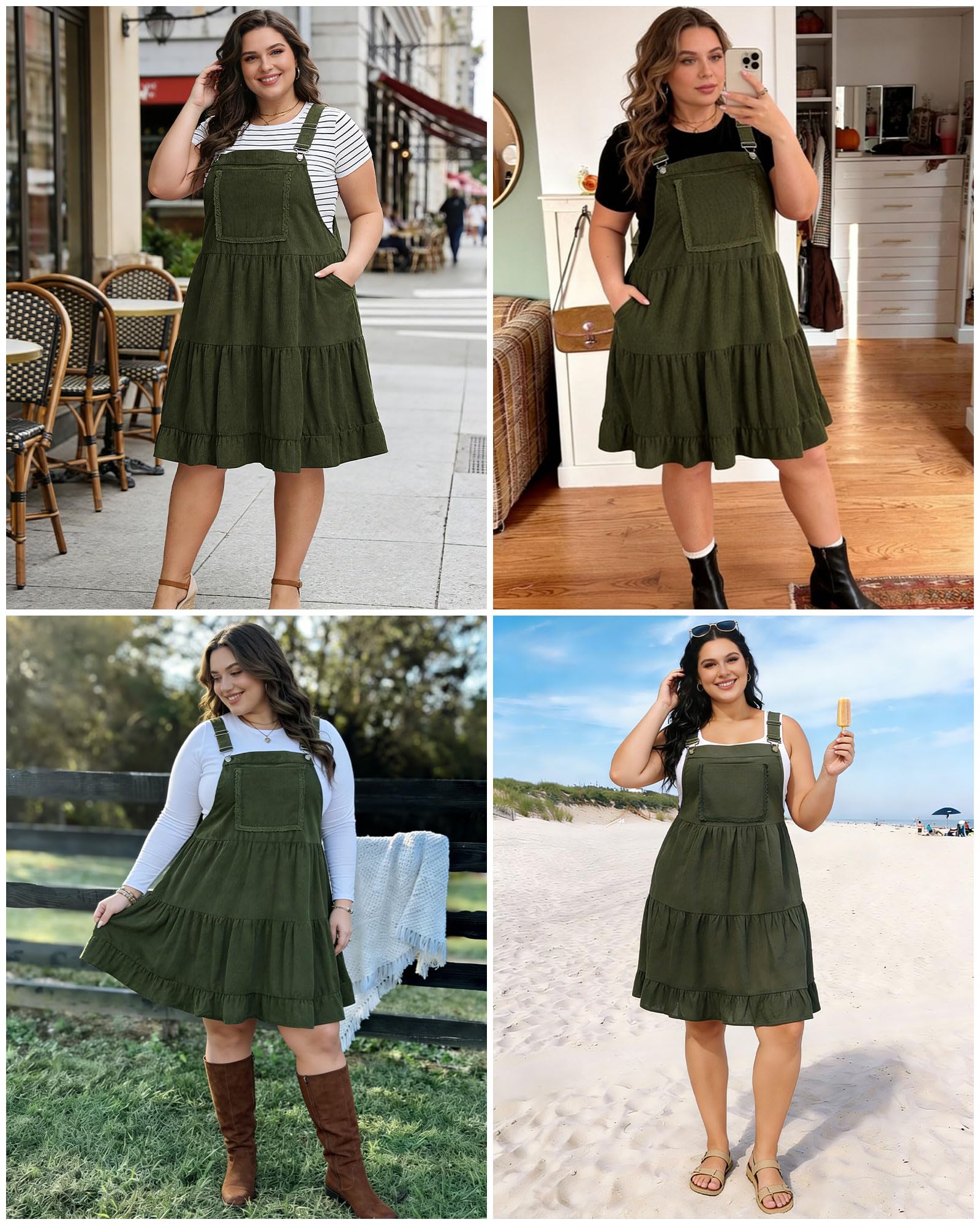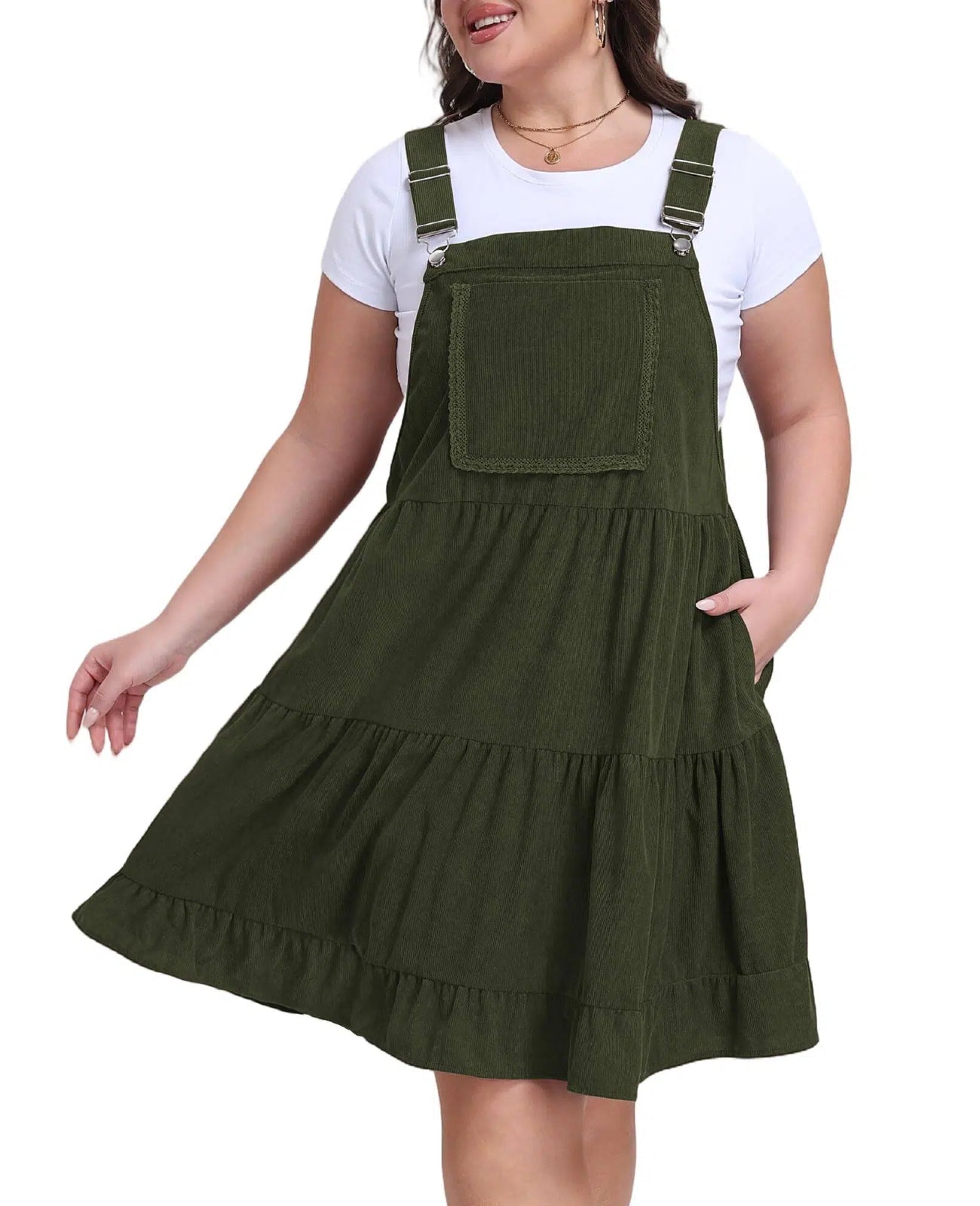 Discover the ultimate Plus Size Overall Dress Corduroy with Front Pocket in Army Green from Moon Wood – a versatile womens jumper dress blending cozy corduroy fabric with practical front pockets. Suitable for holiday, beach, shopping, lounging, gardening, office, leisure, street, this comfortable and presentable piece strikes the perfect balance between casual and formal. Ideal as a gift for a friend or yourself, it offers inclusive plus-size sizing for effortless style year-round.