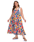 Plus Size Overall Dress Flowy A-Line - Navy Red Brown