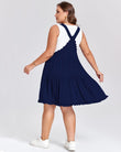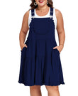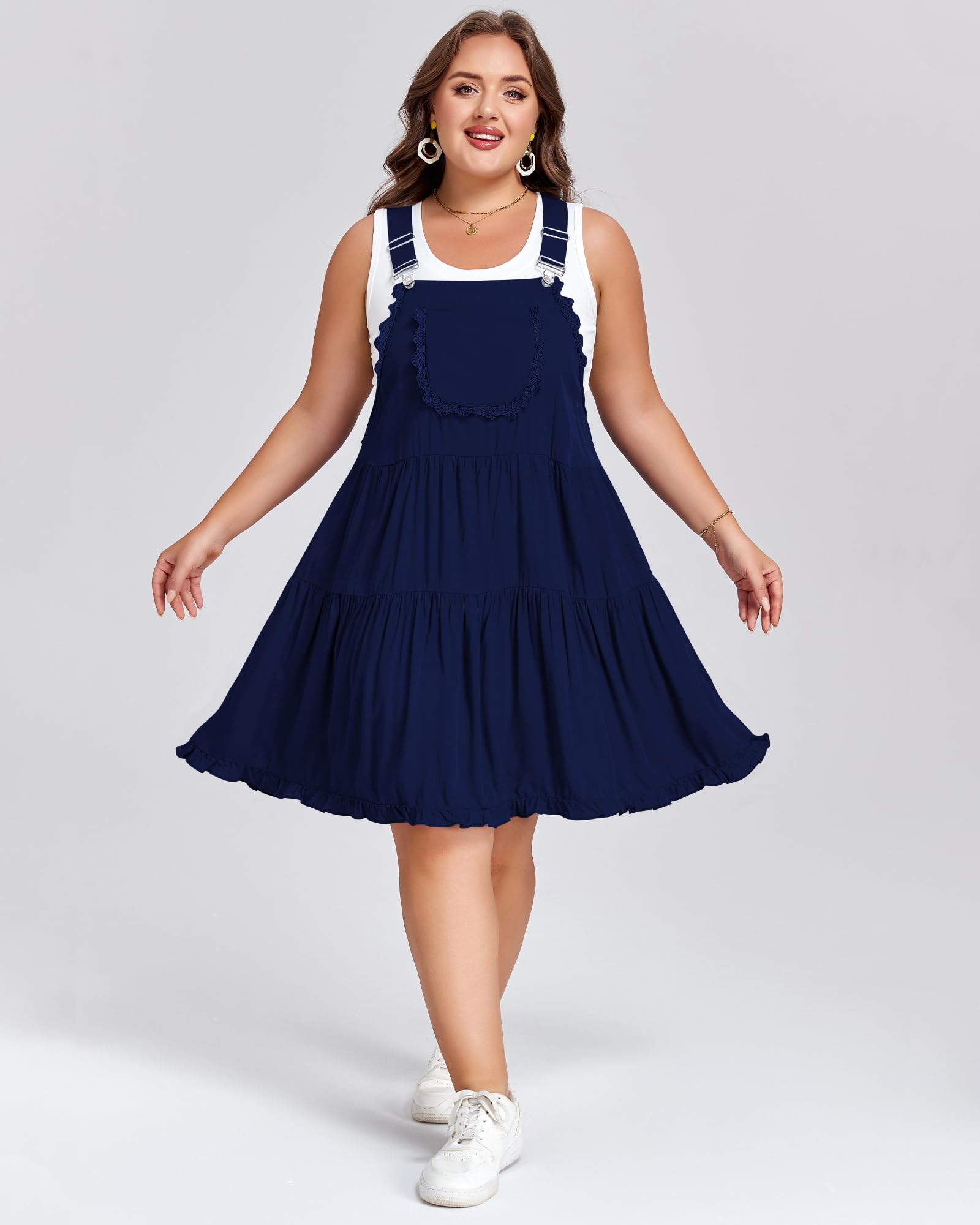 Meet your new wardrobe essential: the Moon Wood Plus Size Overall Dress with delicate lace trim. This navy blue mini dress is the versatile piece you'll reach for every day. Crafted from breathable, lightweight fabric, it keeps you cool and comfortable on the move. The flattering above-knee length and adjustable straps offer both style and ease.