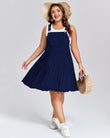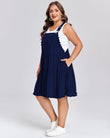 Plus Size Overall Dress Lace Trim Mini Dress - Navy Blue