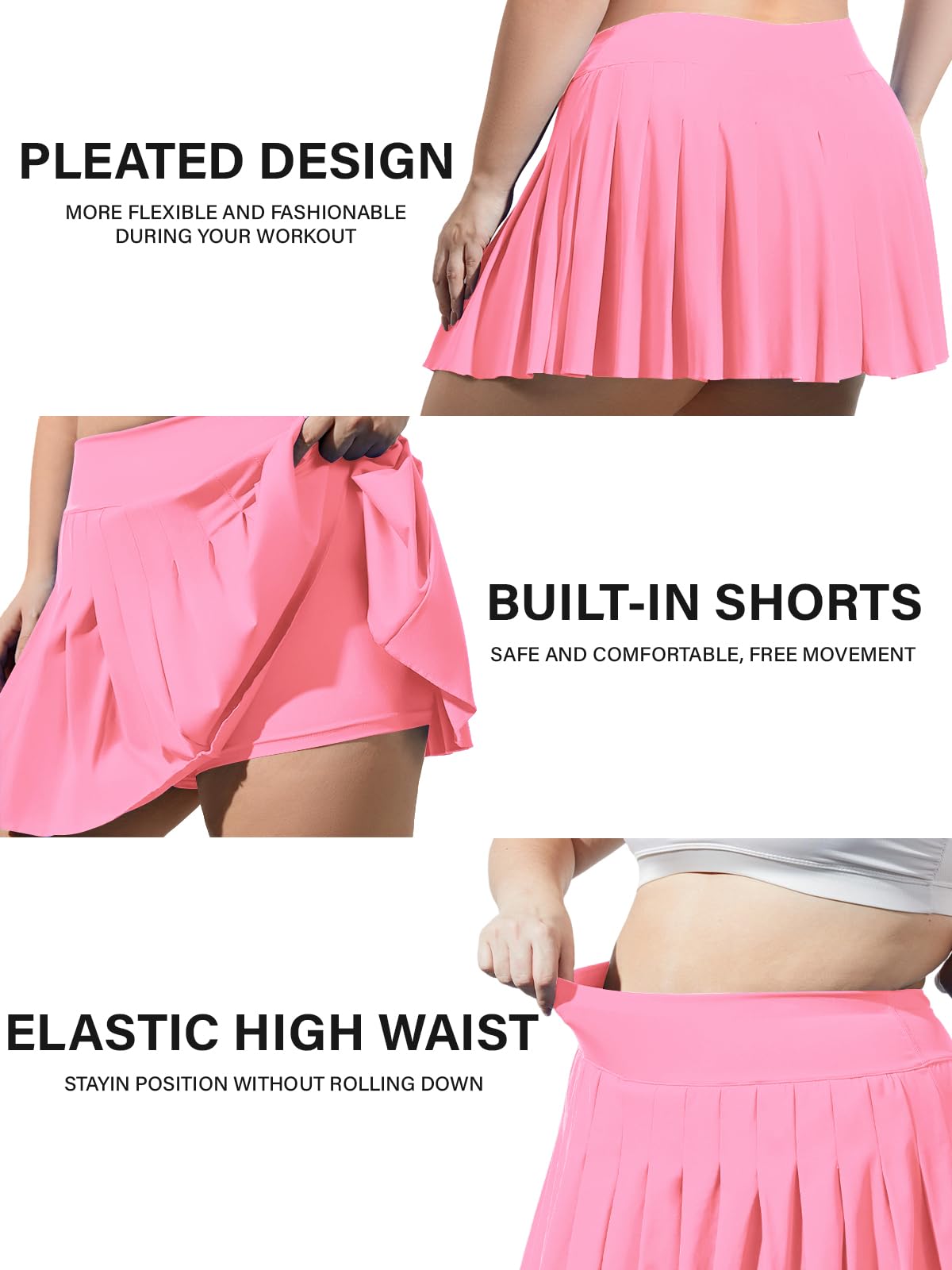 Elevate your athletic wardrobe with the Moon Wood Women's Plus Size Pleated Mini Skirt. Designed with a focus on comfort and style, this high waist tennis skirt ensures you move with ease on and off the court. The integrated shorts provide extra coverage and confidence, making it ideal for dynamic activities like tennis, running, or even a spirited game of volleyball. The lightweight, breathable fabric keeps you cool, while the high waist design offers a flattering silhouette, enhancing both performance and aesthetics.