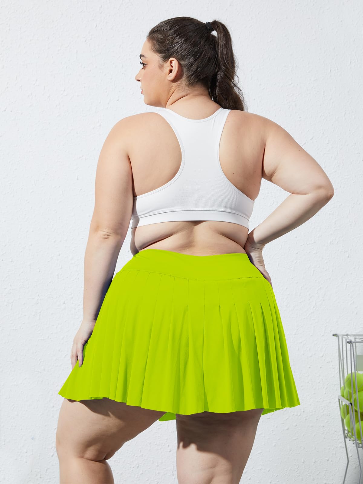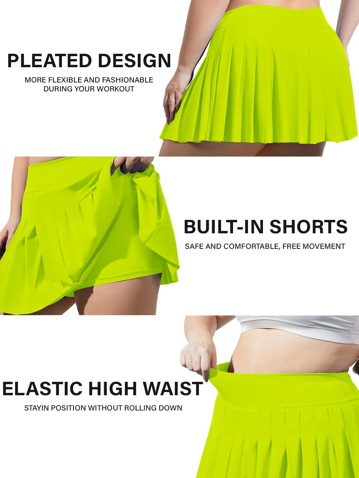 Plus Size Pleated Mini Skirt-Neon Yellow