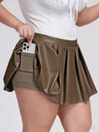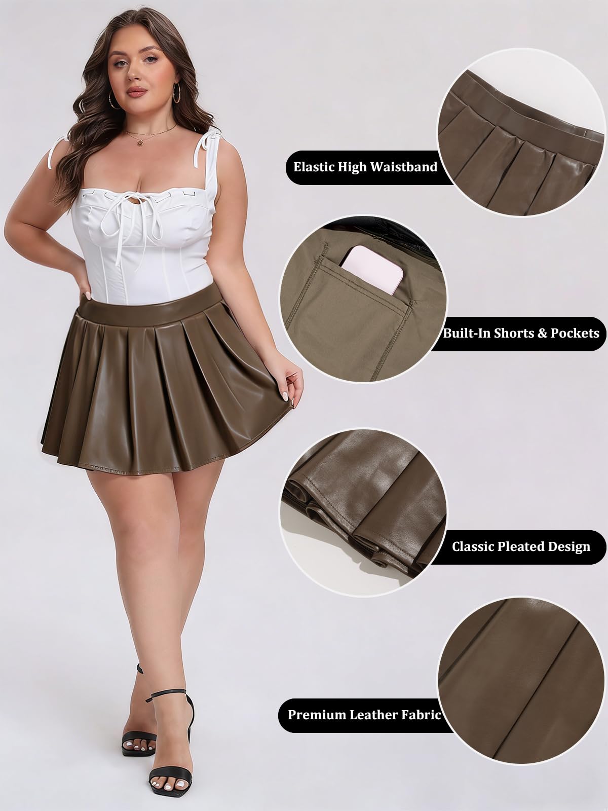 Elevate your style with the Moon Wood Plus Size Pleated Skirt in Brown Faux Leather. Expertly crafted from premium, soft leather fabric, this skirt blends timeless pleated design with enduring quality. Designed for comfort and confidence, it offers a cozy fit for all-day wear while maintaining its flawless texture without peeling. A brief airing upon arrival ensures it’s ready to wear. Perfect for creating versatile, chic looks—add this essential skirt to your wardrobe today.