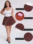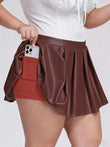 Plus Size Pleated Skirt Faux Leather - Jujube Red