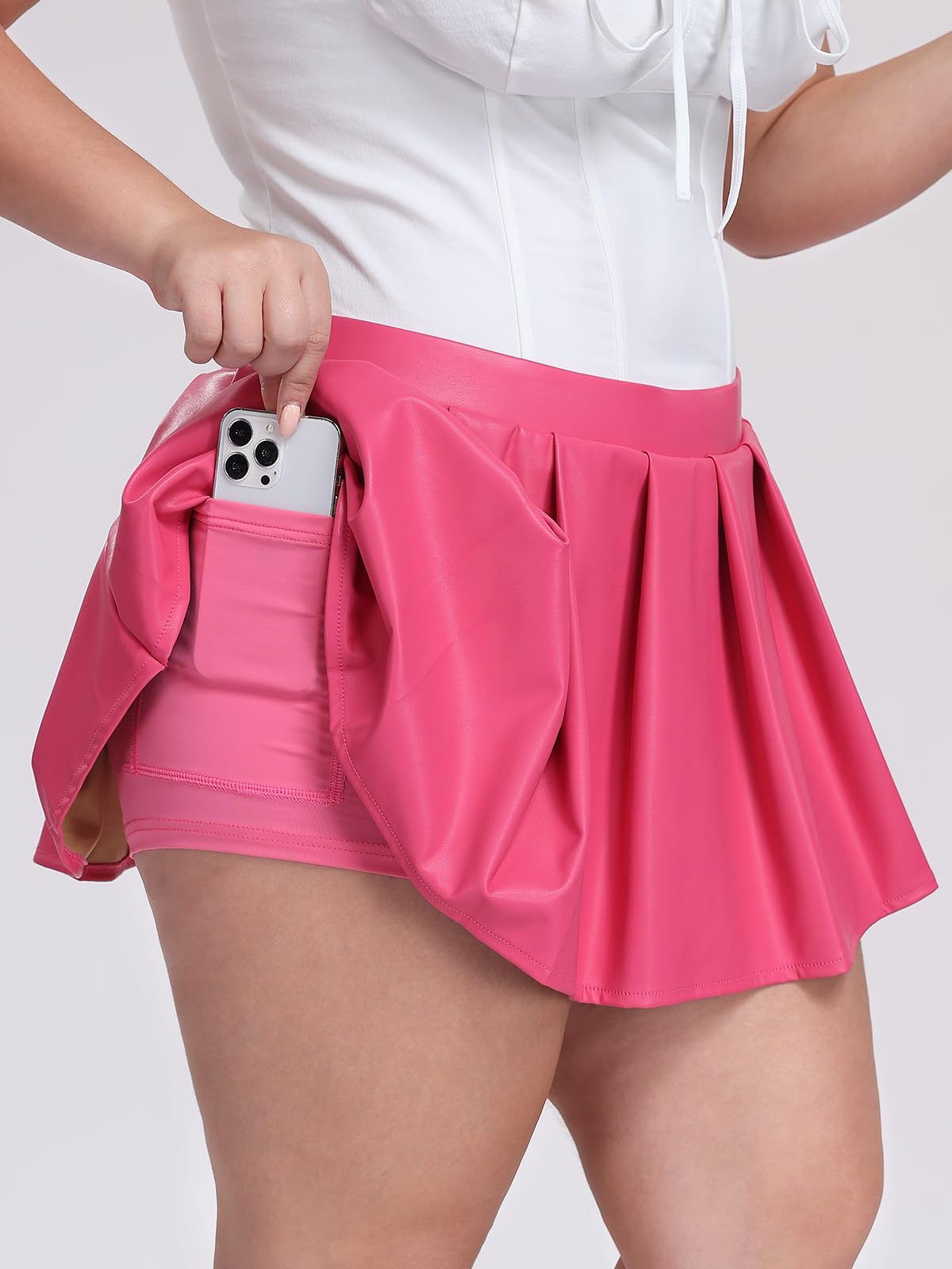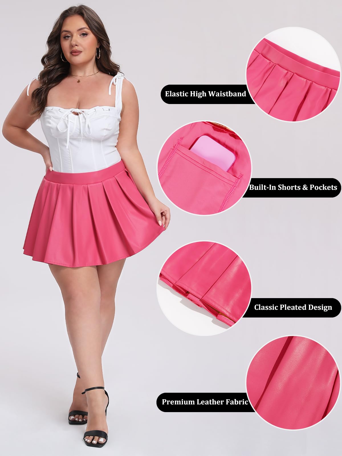 Introducing the Moon Wood Plus Size Pleated Skirt in stunning Rose Pink faux leather. Expertly crafted from premium, supple leather fabric, this skirt merges high-fashion style with enduring comfort. Its elegant pleats and soft texture ensure a cozy, flattering fit that lasts all day, with a durable finish designed to resist peeling. For optimal wear, simply air out the skirt briefly upon arrival to allow any natural material scent to dissipate. Embrace confident, all-day elegance in a piece that perfectly balances trendy design and reliable quality.