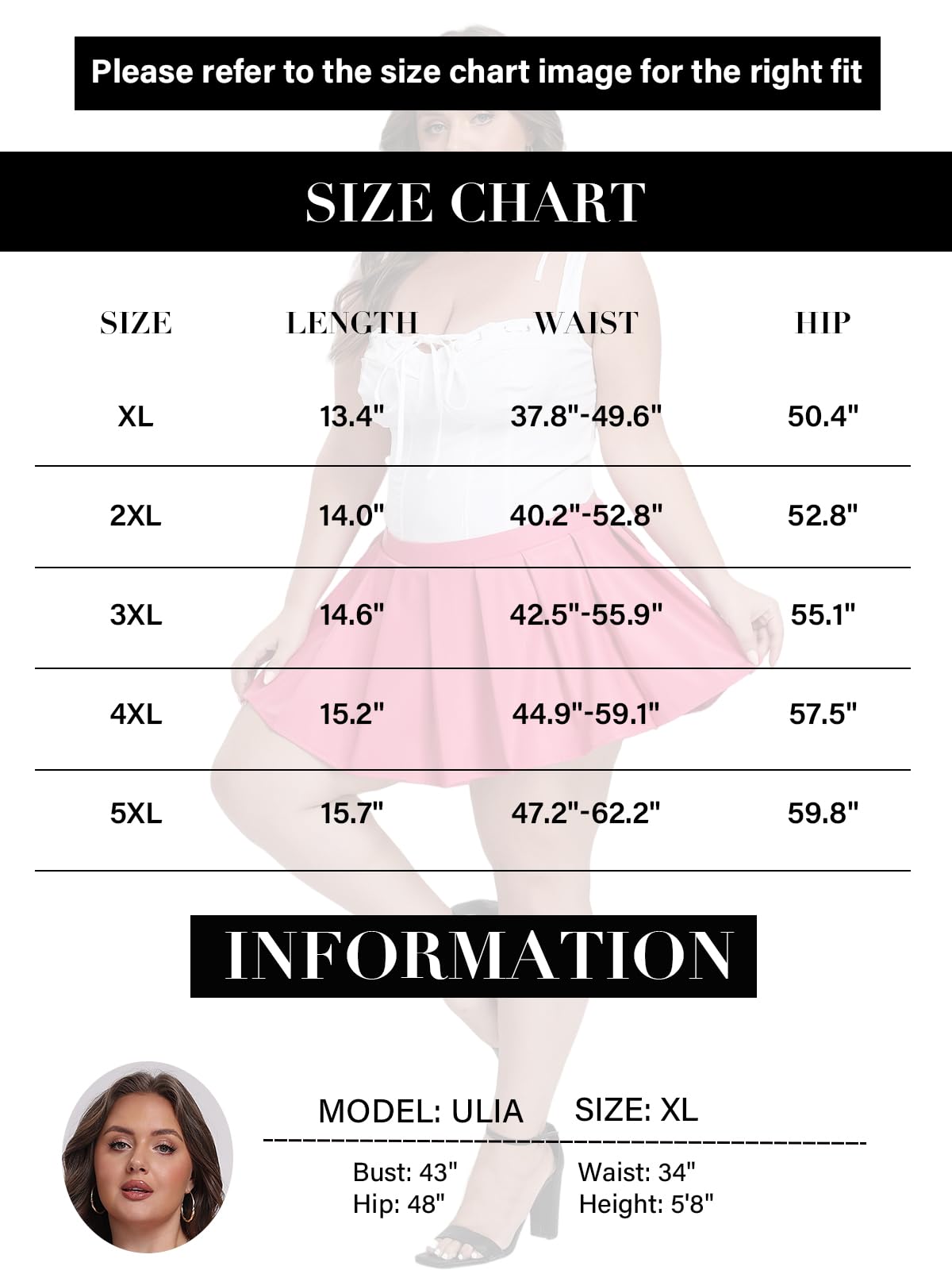 Plus size skirts are available in a variety of sizes (XL-5XL)
