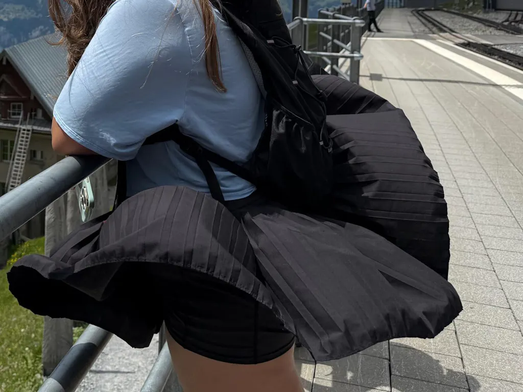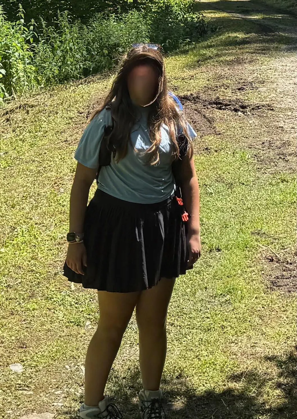 I added a few pictures but blurred out her face and some other people around her (if anything looks strange), but the skirt should be just fine to see. I even added one of us up on a mountain that was crazy windy, so you could see the shorts too!