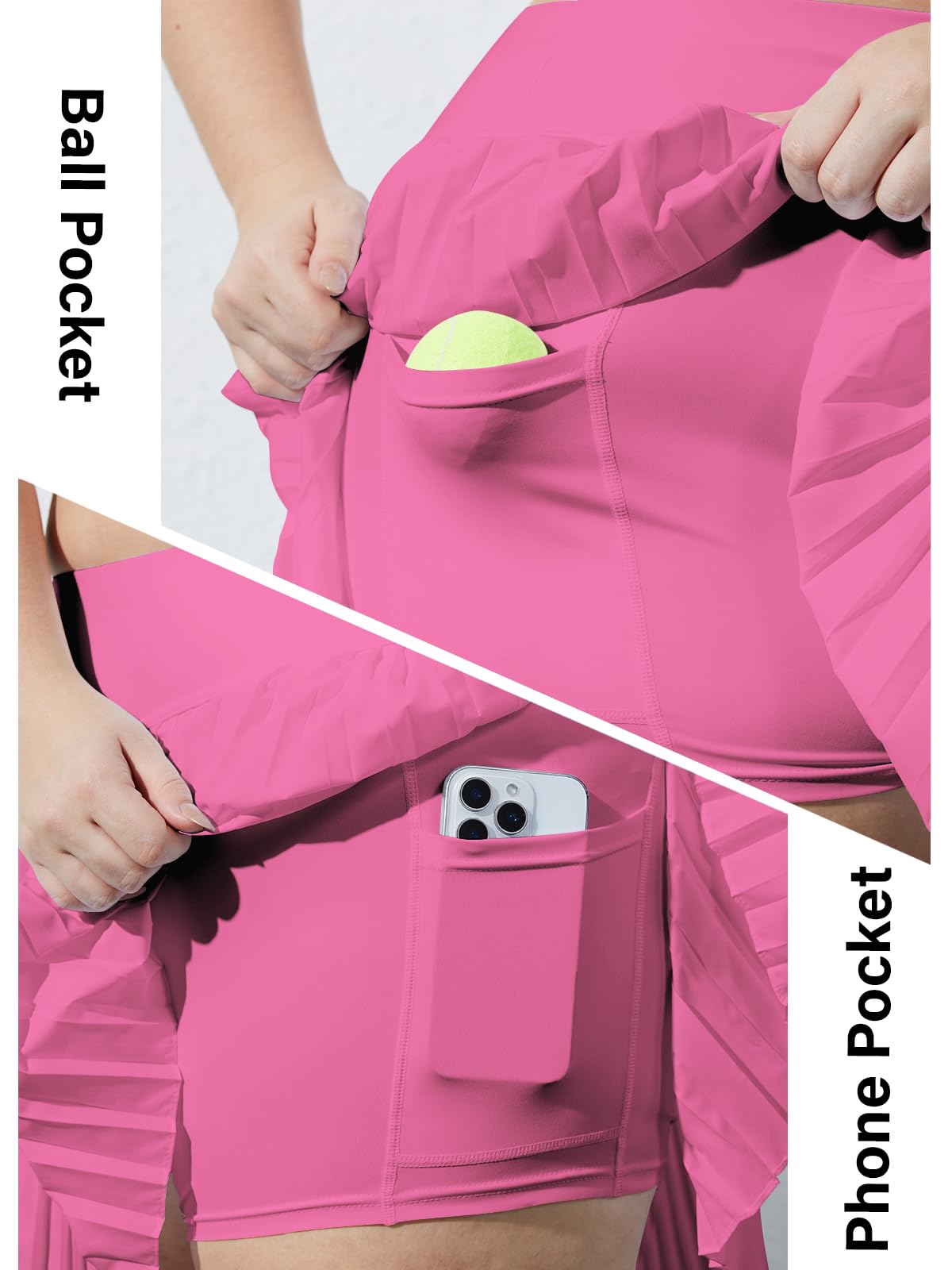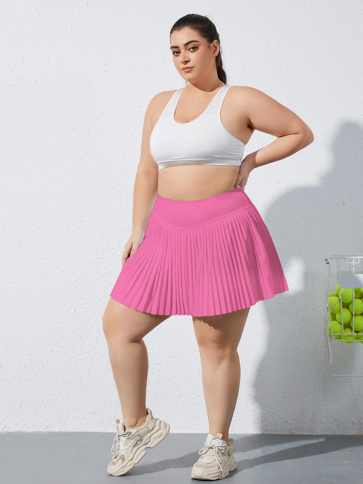 Plus Size Pleated Tennis Skirt with Shorts - Rose Pink