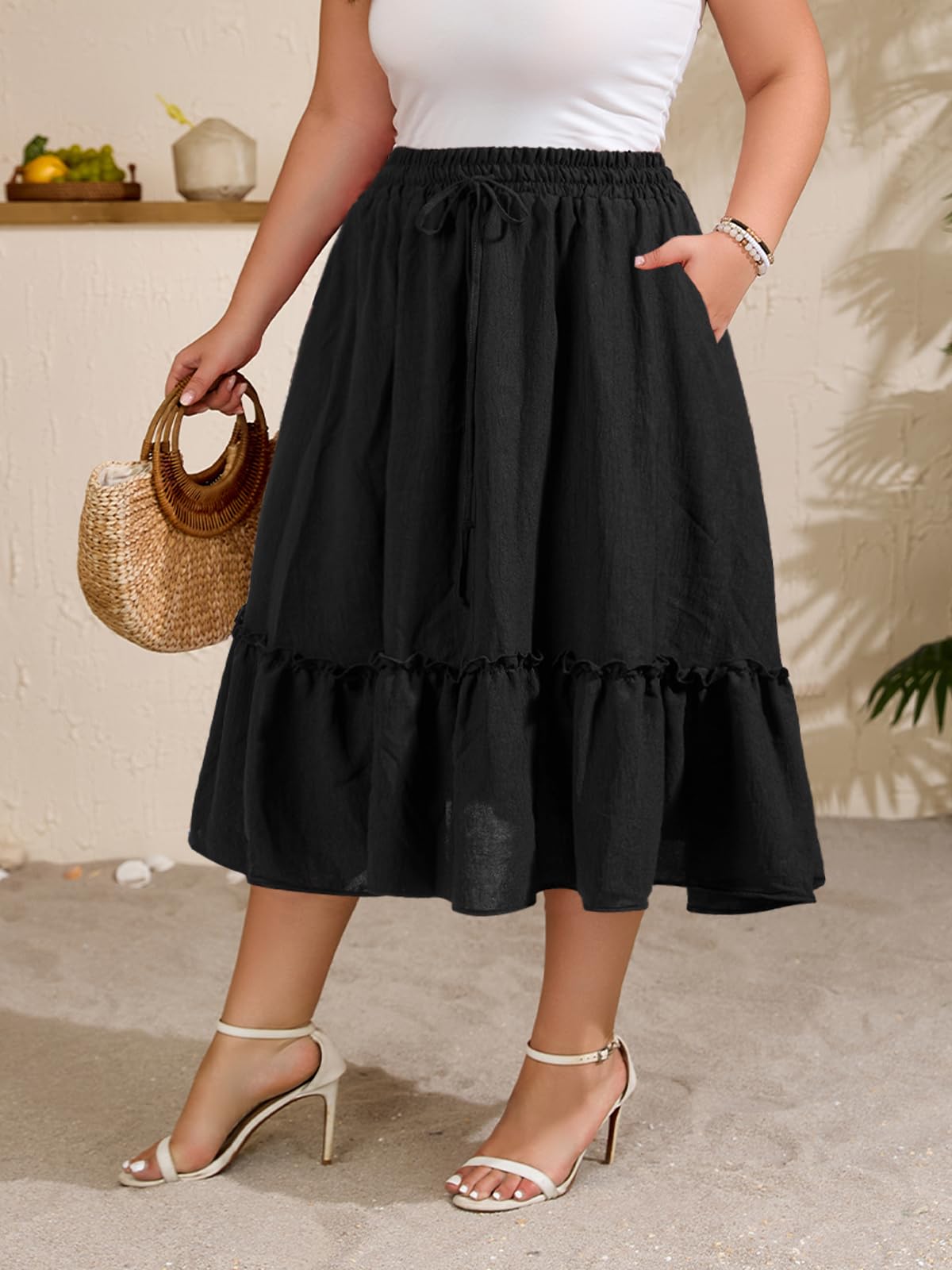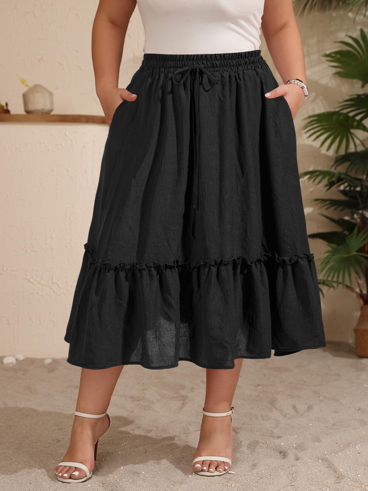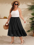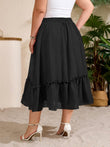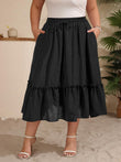 Plus Size Ruffle Midi Skirt with Pockets - Black