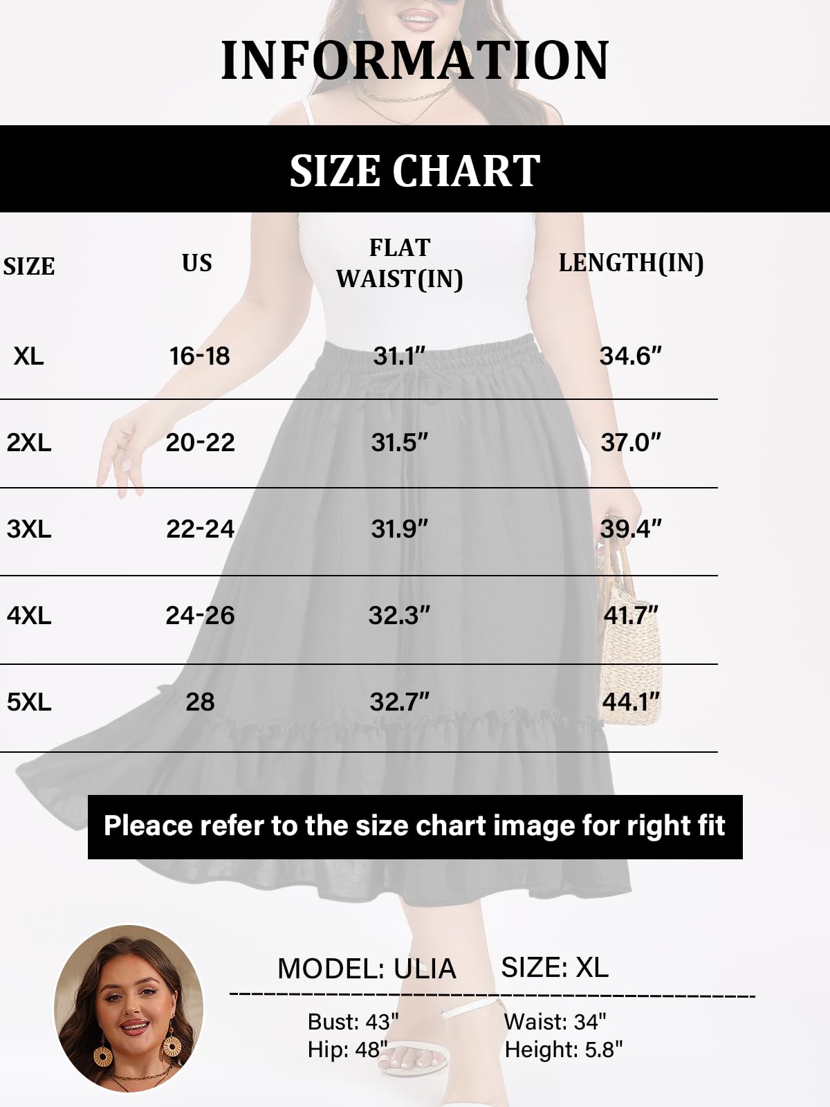 Plus size skirts are available in a variety of sizes (XL-5XL)