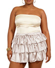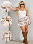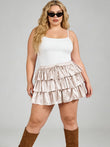 Plus Size Ruffle Mini Skirt Tiered Flowy - Beige