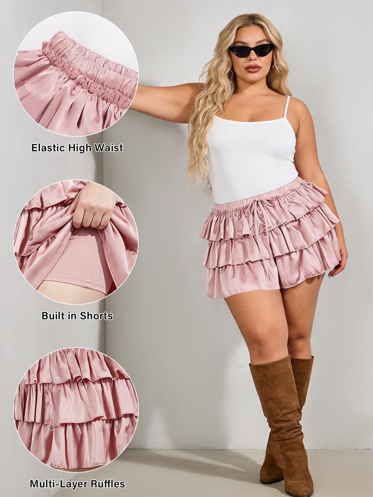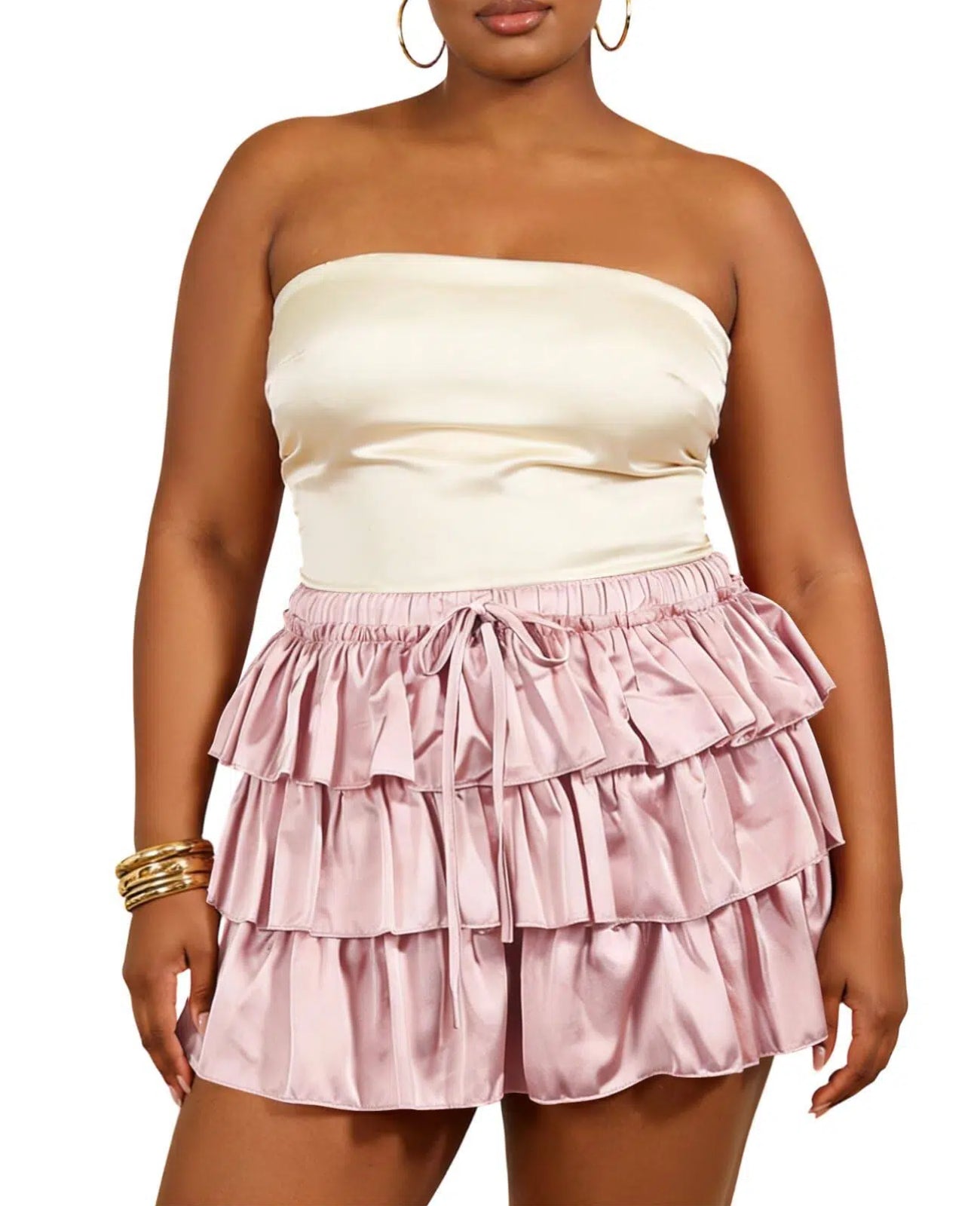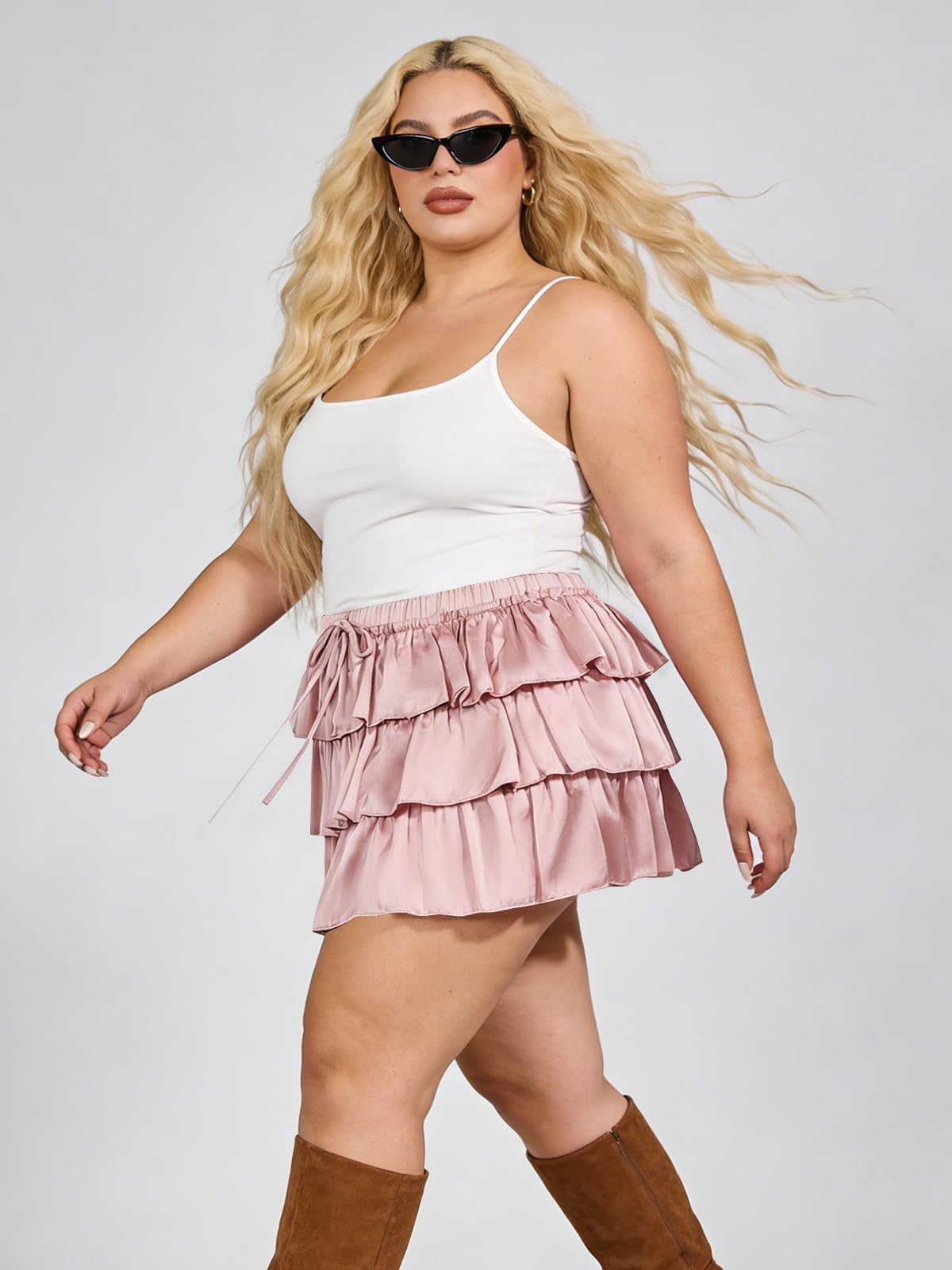 Pair this Light Pink gem with a cropped top and sandals for beachy days, or layer under a denim jacket for evenings out. Its versatile Plus Size Ruffle Mini Skirt design suits plus-size figures from casual to chic.