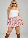 Plus Size Ruffle Mini Skirt Tiered Flowy - Light Pink