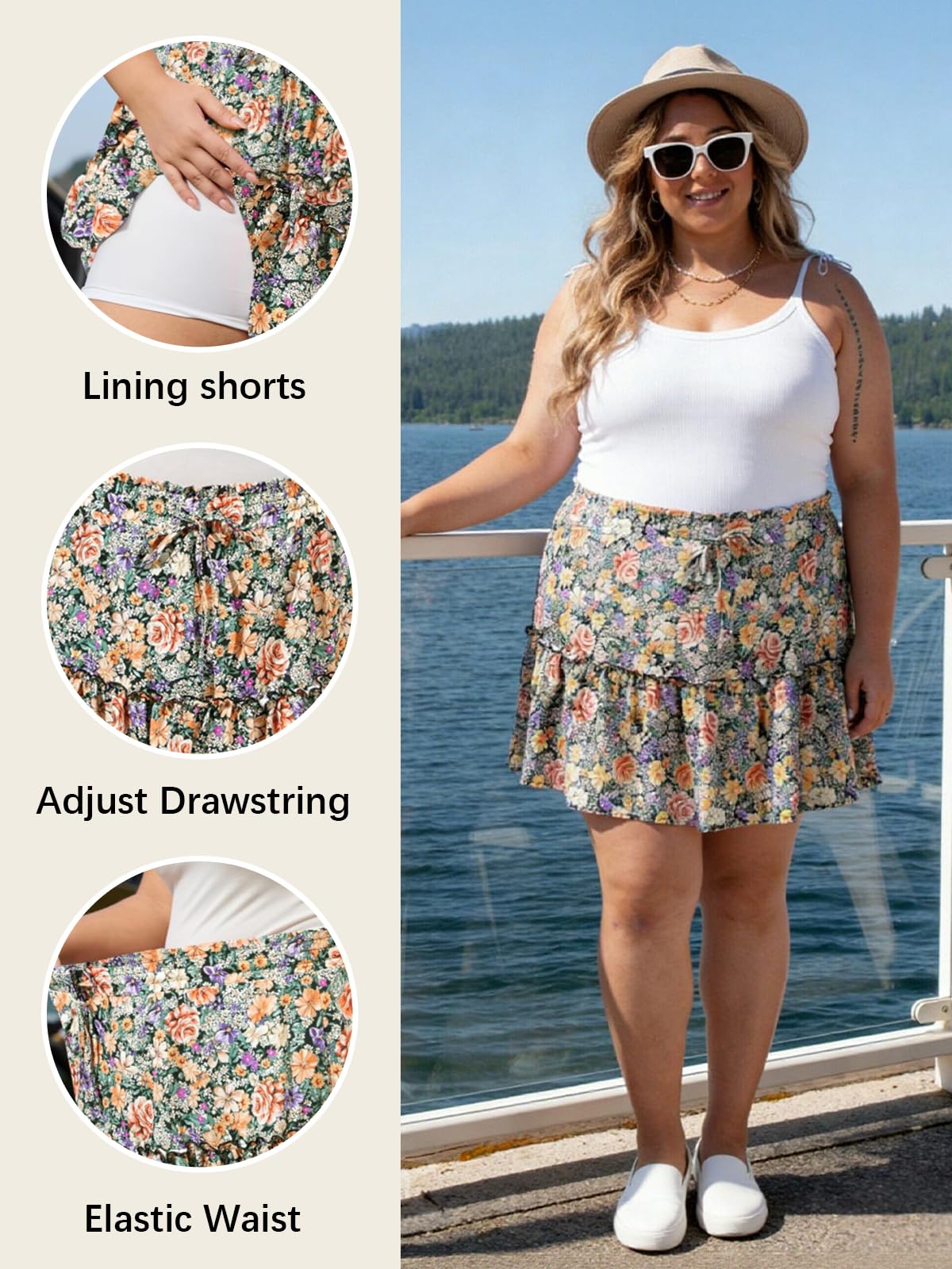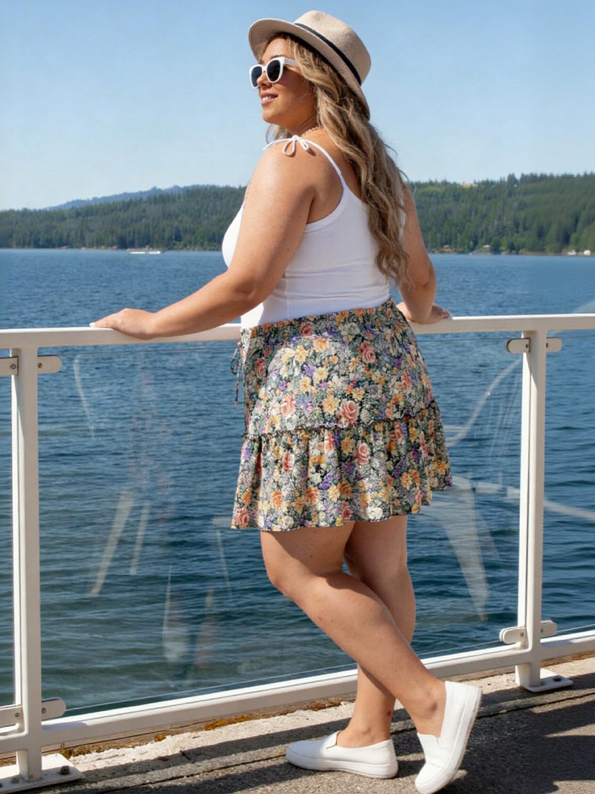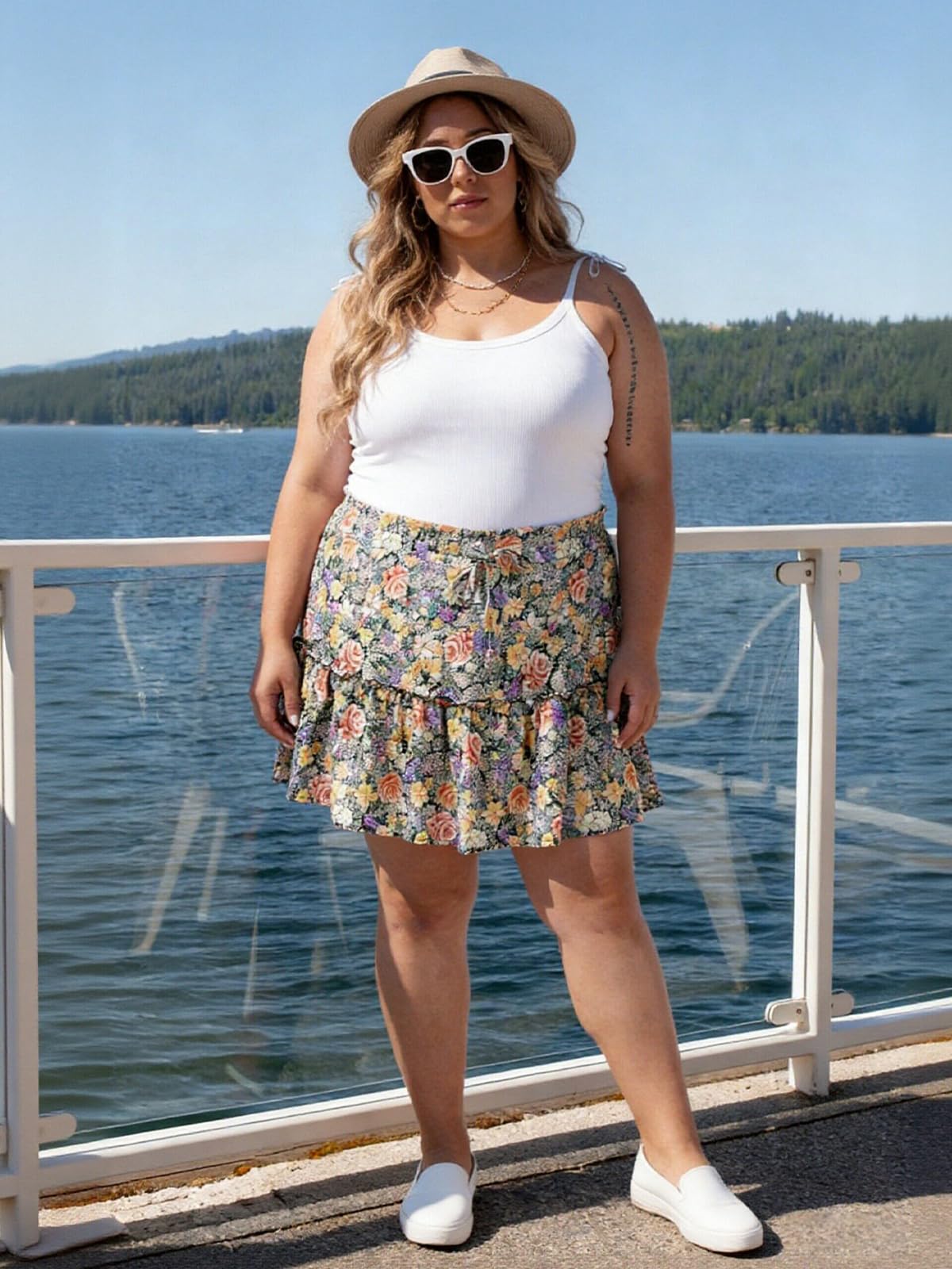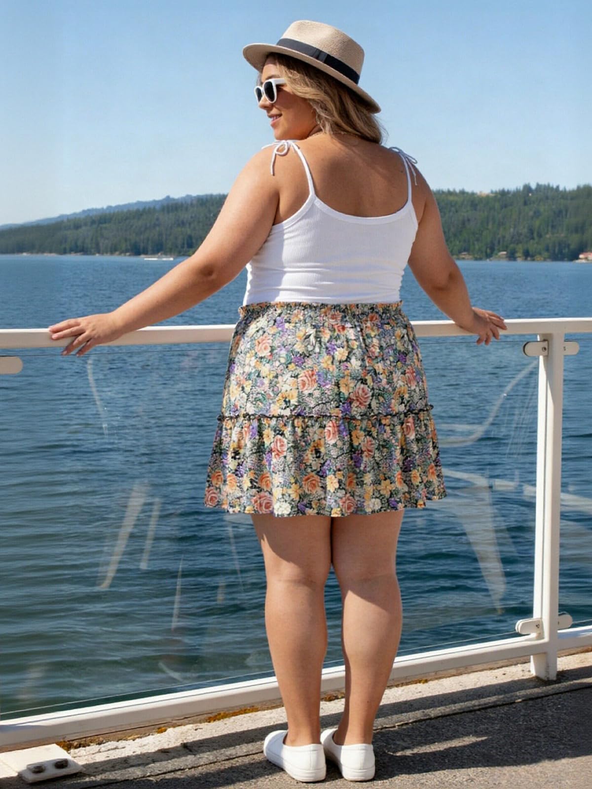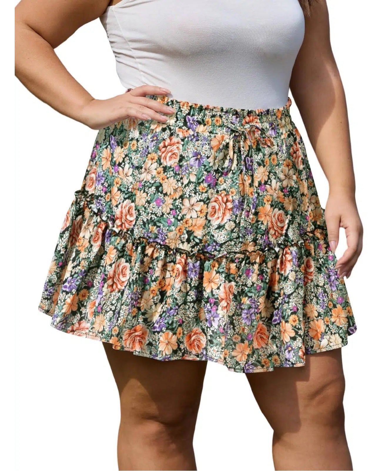 Plus Size Ruffle Tiered Skirt Flowy Floral-Garden Floral