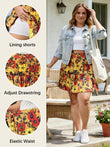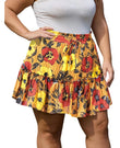 Plus Size Ruffle Tiered Skirt Flowy Floral-Yellow Red Floral