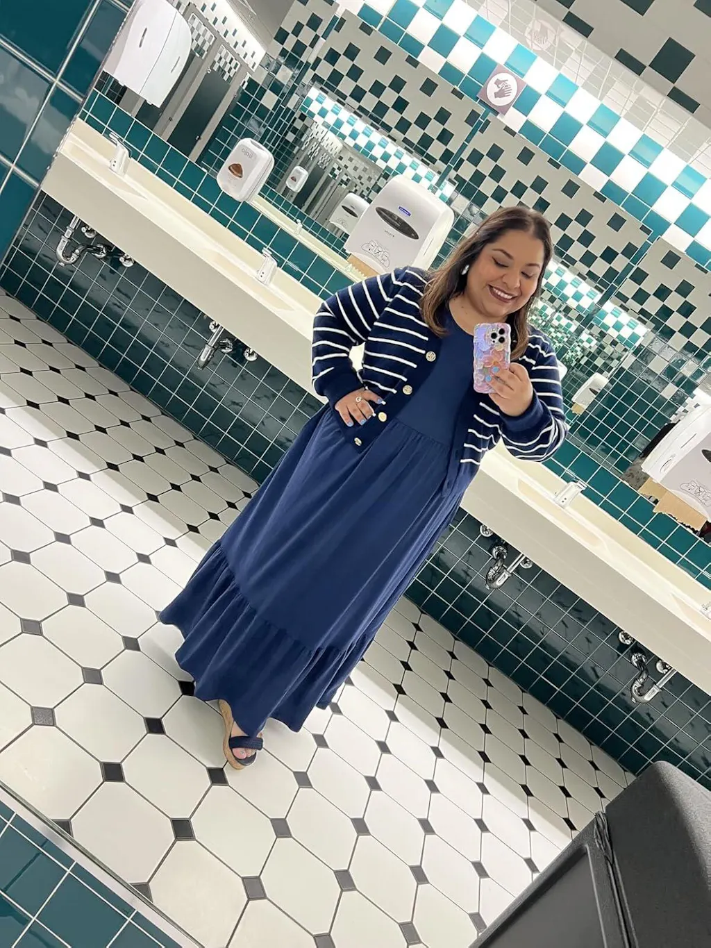 Plus Size Summer Dress Crew Neck Ruffle with Pockets-Navy