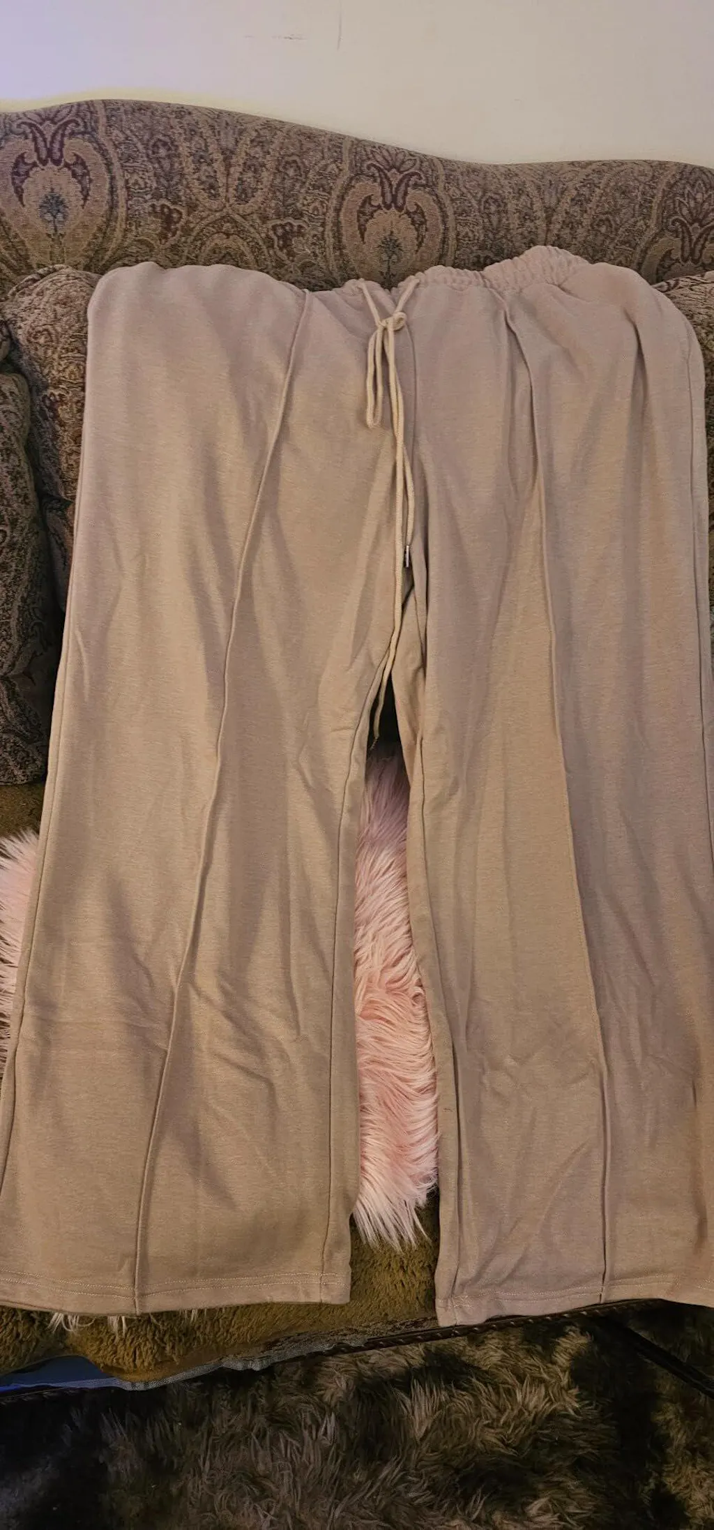 These are Great Quality 👌 Beautiful 🌹 Plus Size Beige wide leg warm material Sweatpants..I Recommend This Product 👍