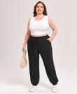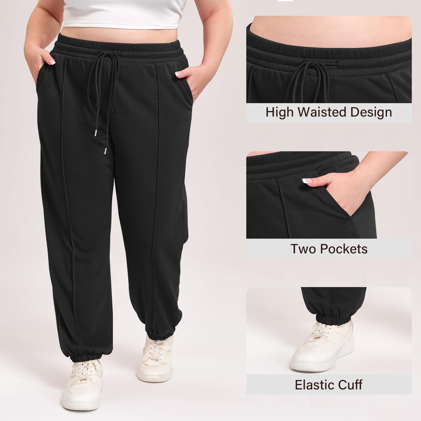 Discover the perfect blend of comfort and style with our Plus Size High-Waisted Sweatpants in classic Black. Designed with your ease in mind, these pants feature a flattering high-rise waist with an inner drawstring and elastic band, allowing you to customize the fit for ultimate relaxation. Two deep side pockets securely hold your essentials like your phone and keys, keeping your hands free.