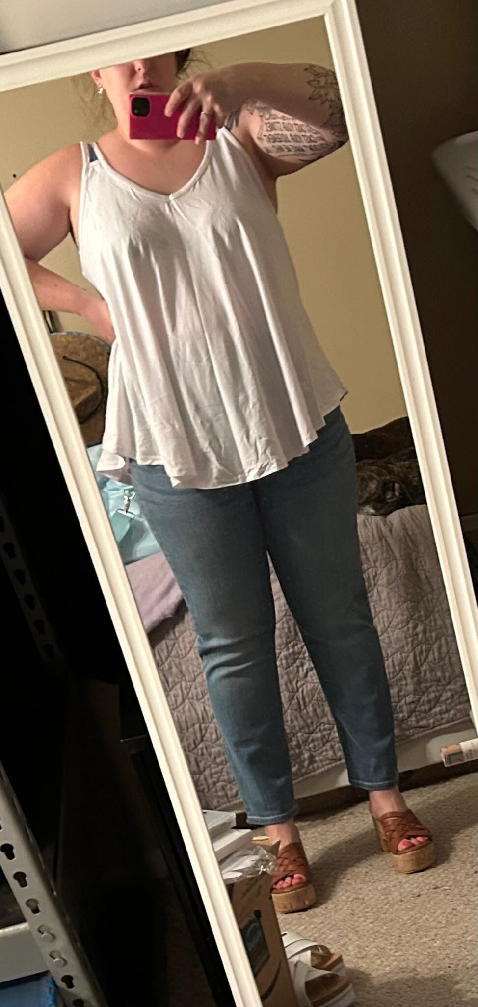 Kinda see through so you would need to wear nude or white underneath. The material is very soft and flowy and would look cute with jeans or shorts. Could dress up or down with a cardigan and jewelry.